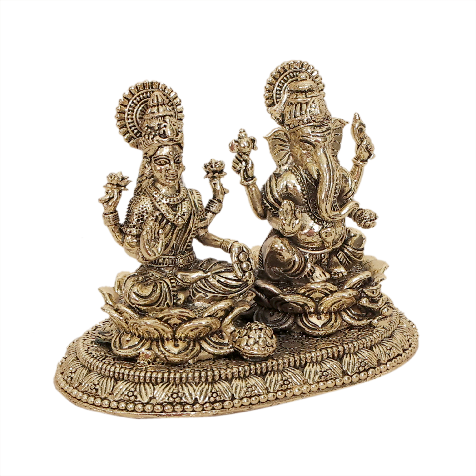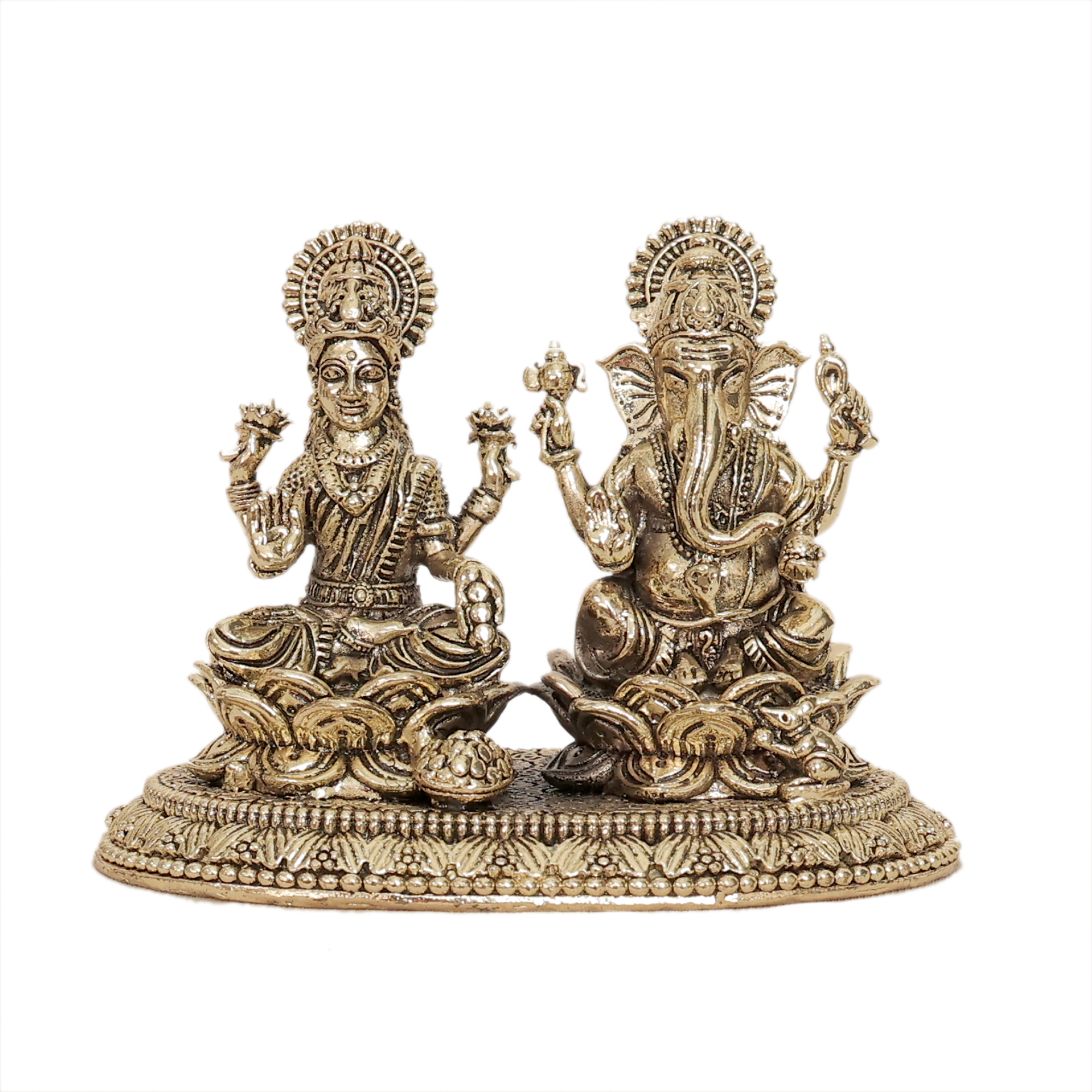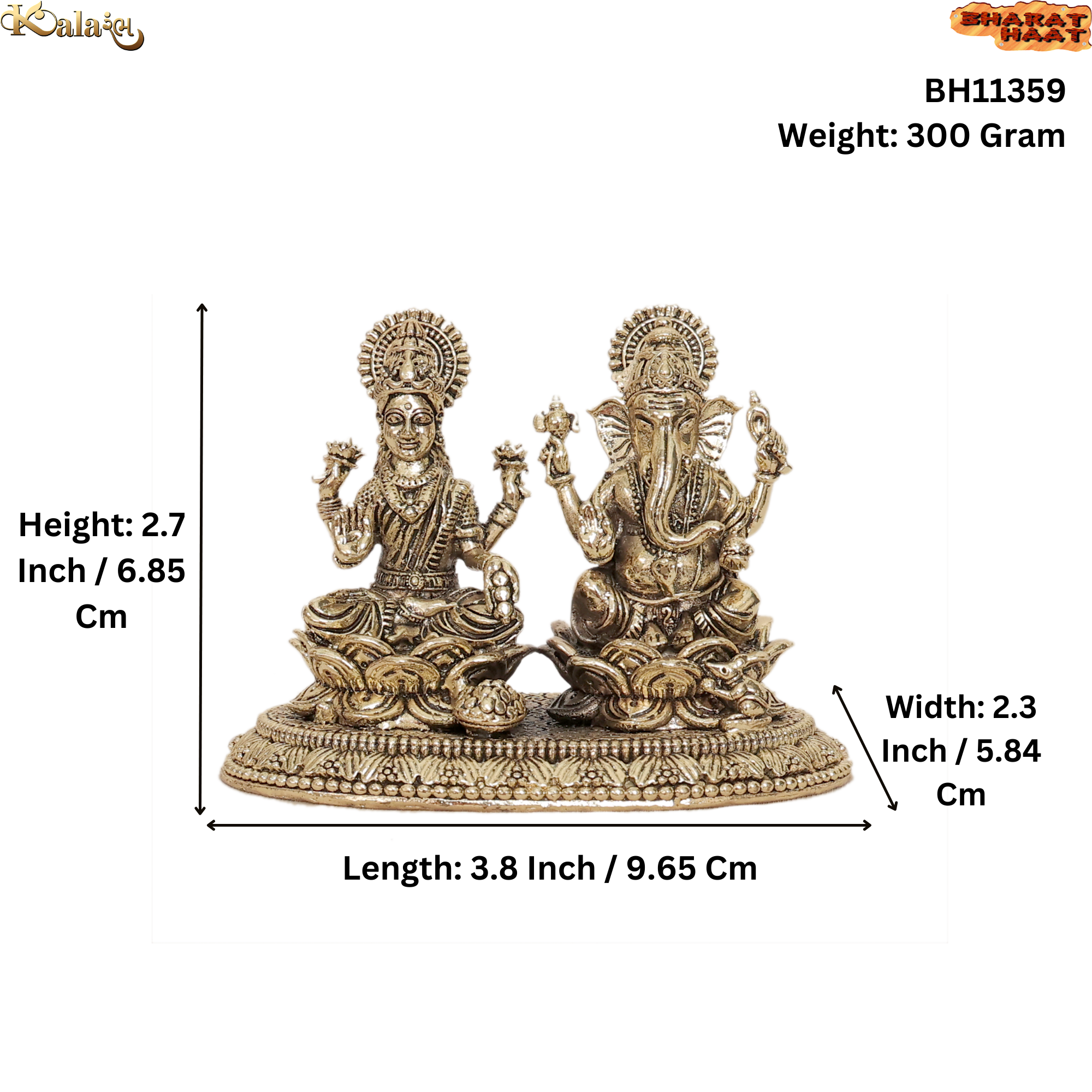 Brass Ganesha Lakshmi Idol for Pooja Ganesh Laxmi Brass Murti for Home Temple BH11359