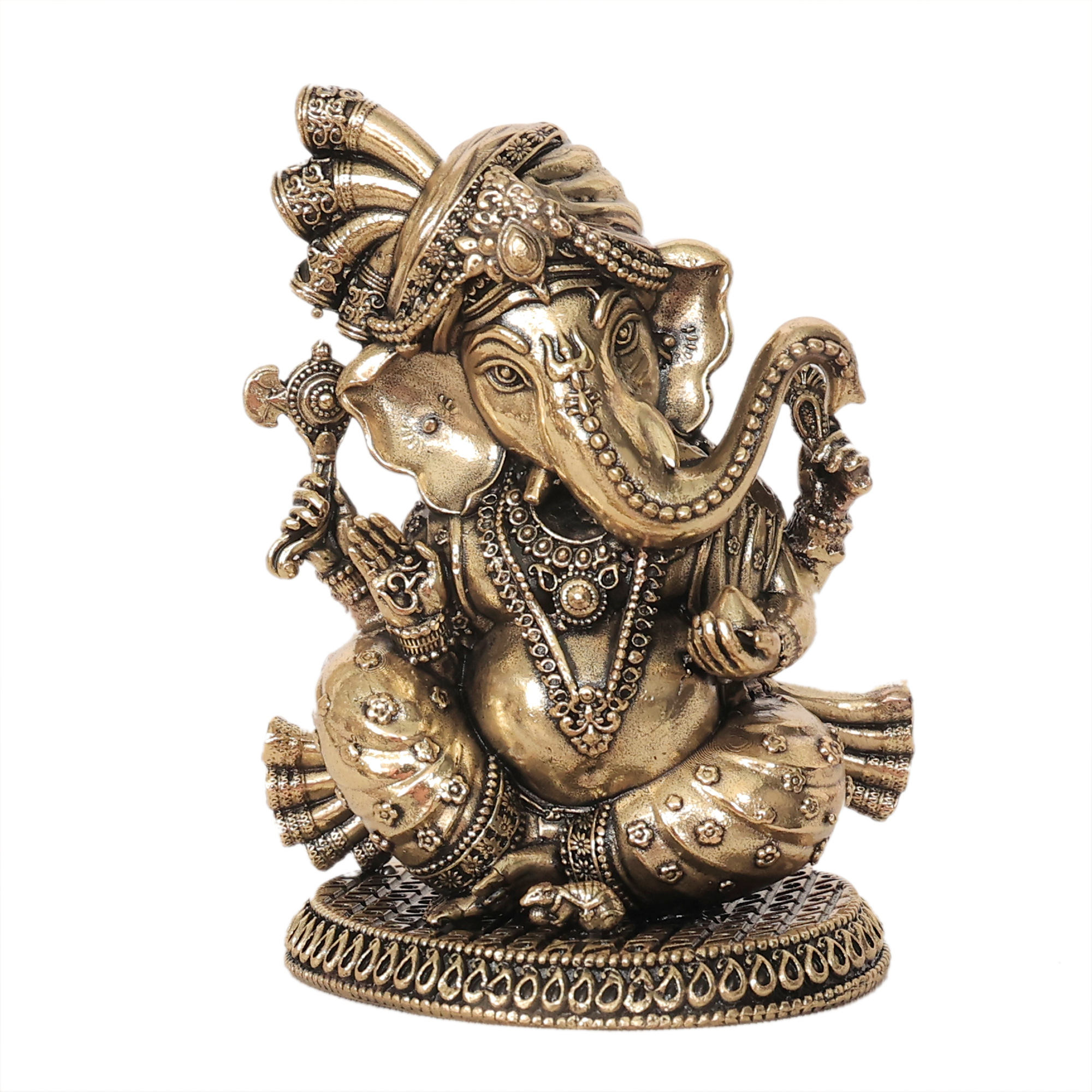 Brass Ganesha Pagdi Wala Idol for Home Mandir BH11919