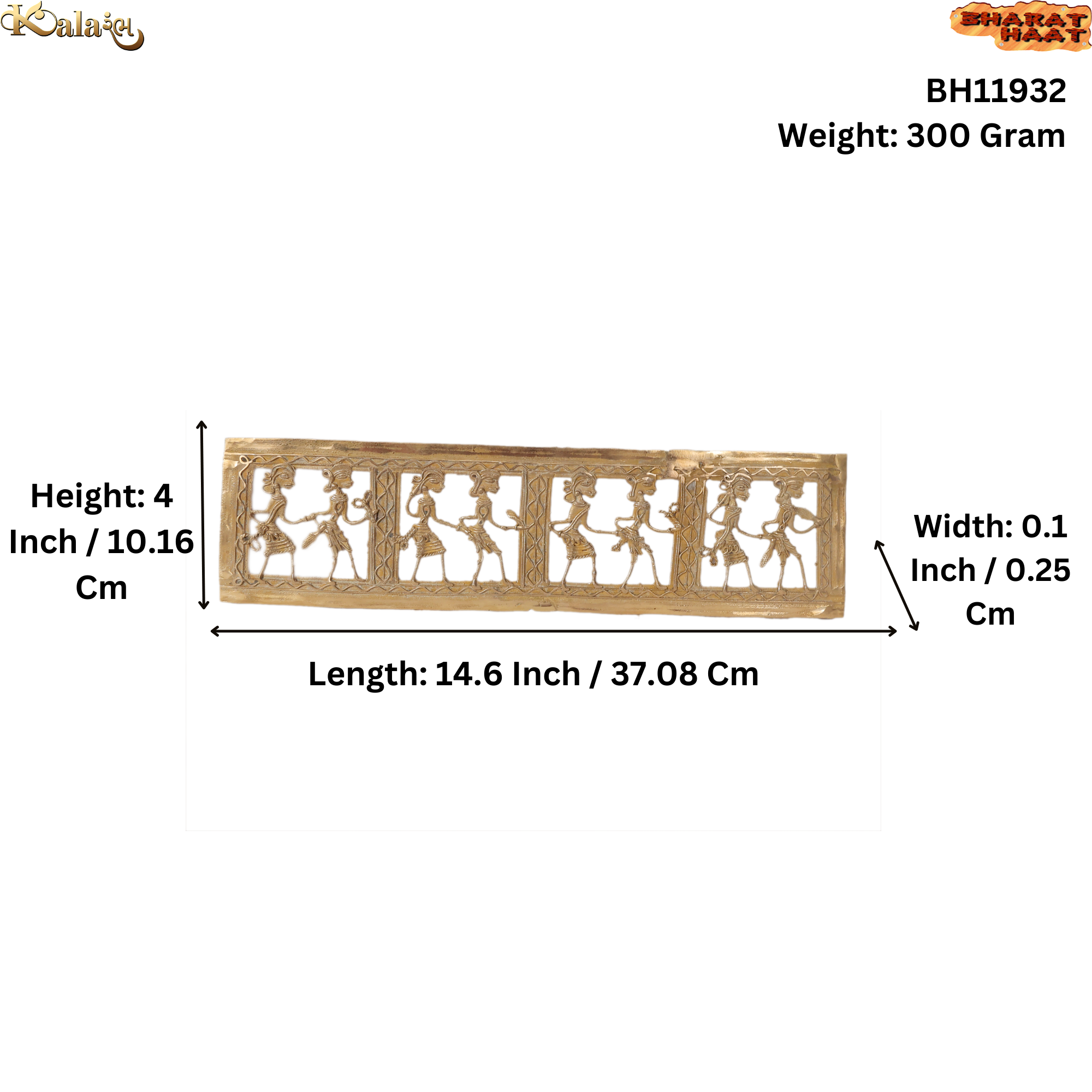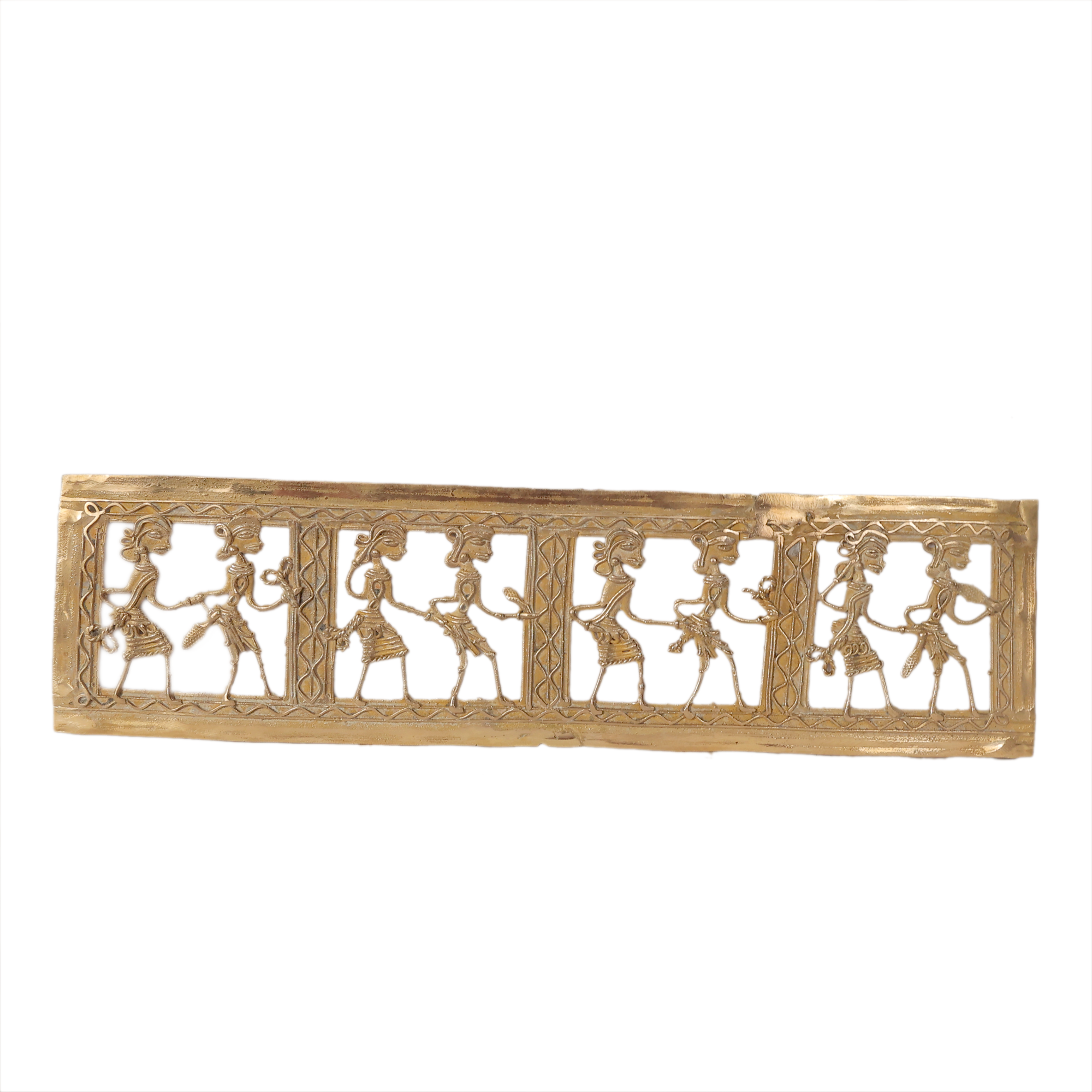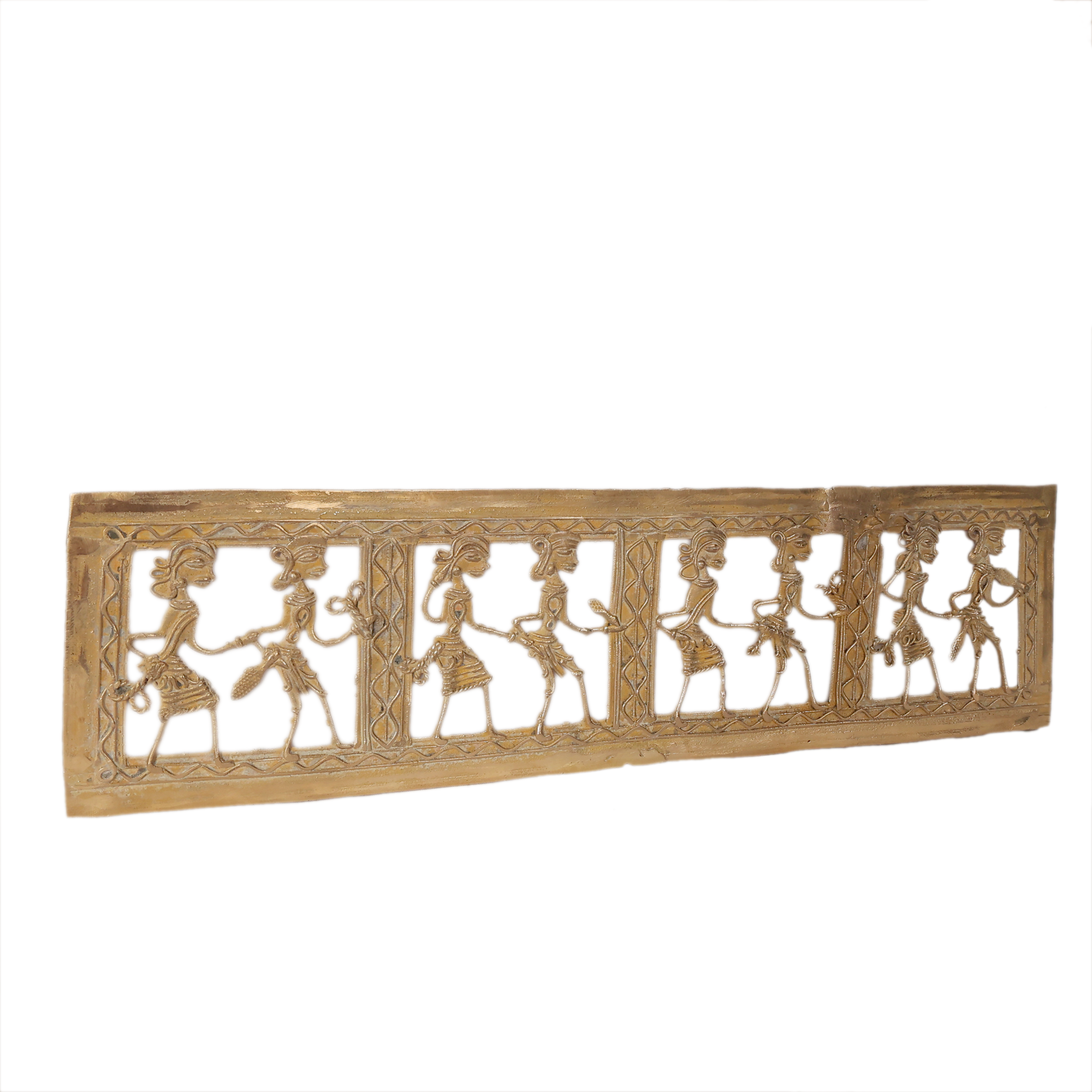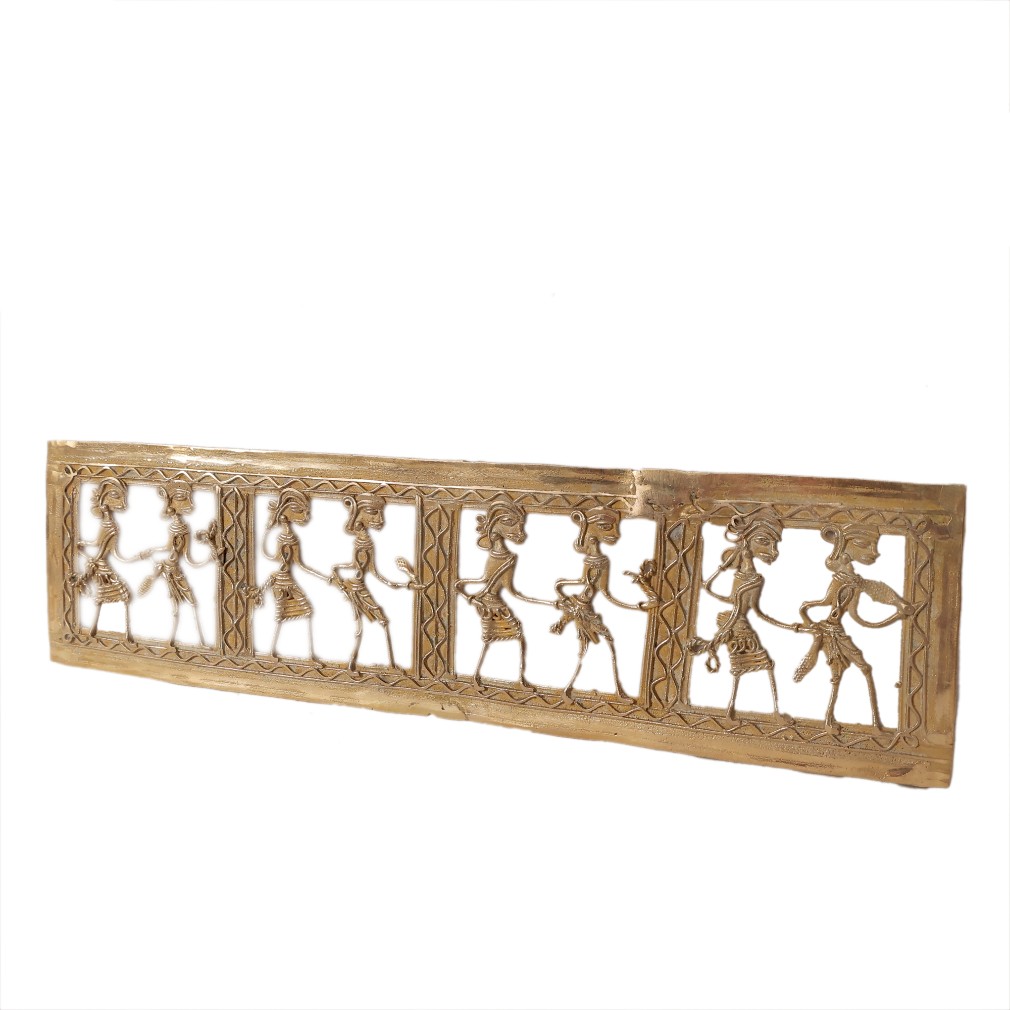 Made from high-quality brass, this handcrafted wall decor showcases detailed artistic work that highlights the beauty of traditional Dhokra and Bastar style metal craft. The slim and elegant design makes it a perfect decorative element for both modern and traditional interiors.
