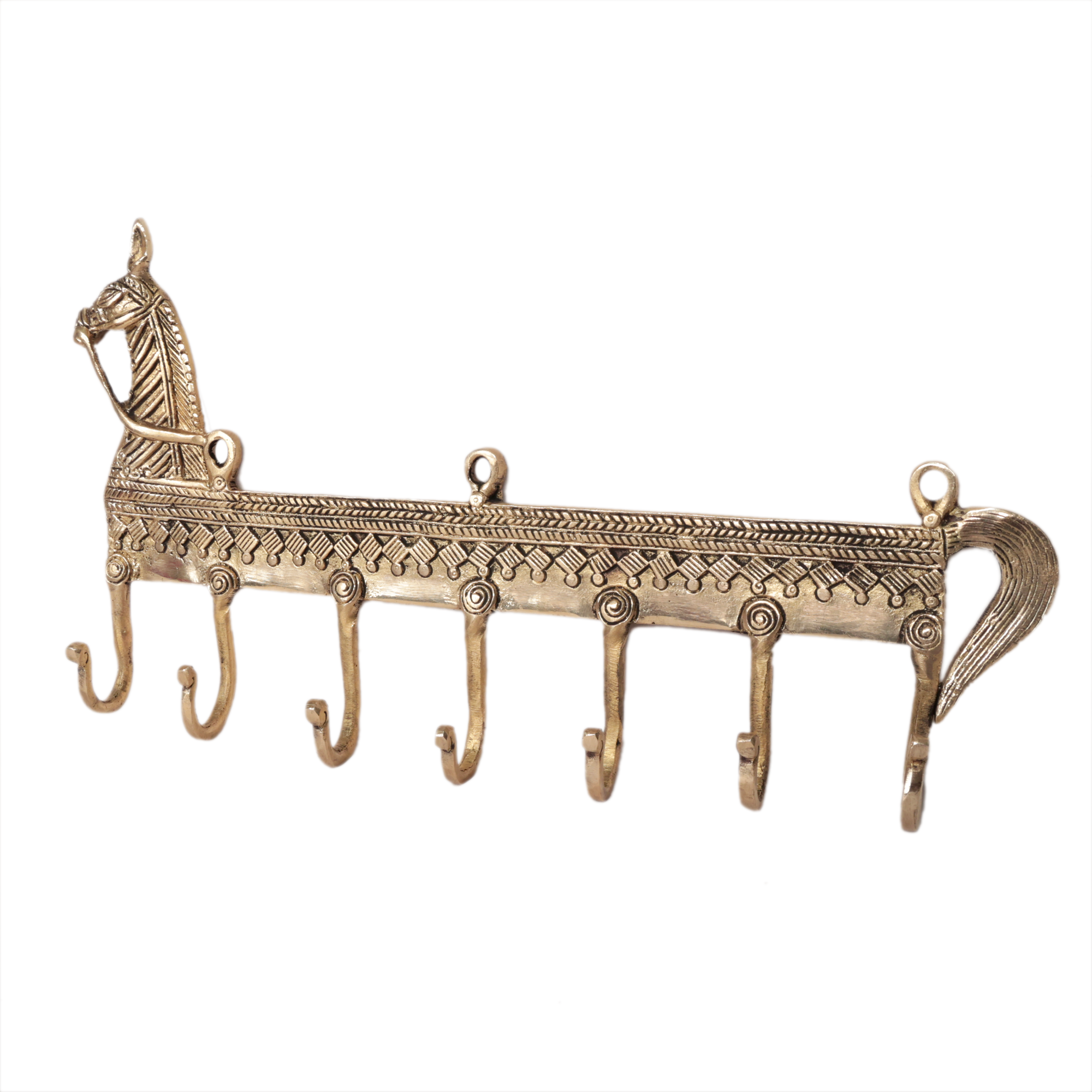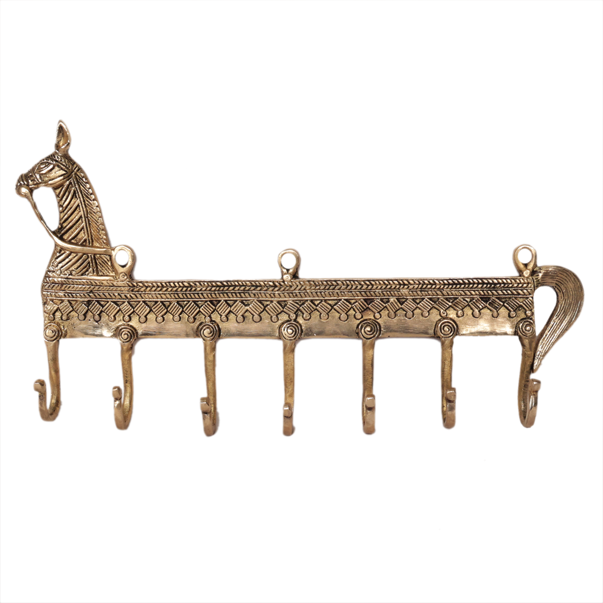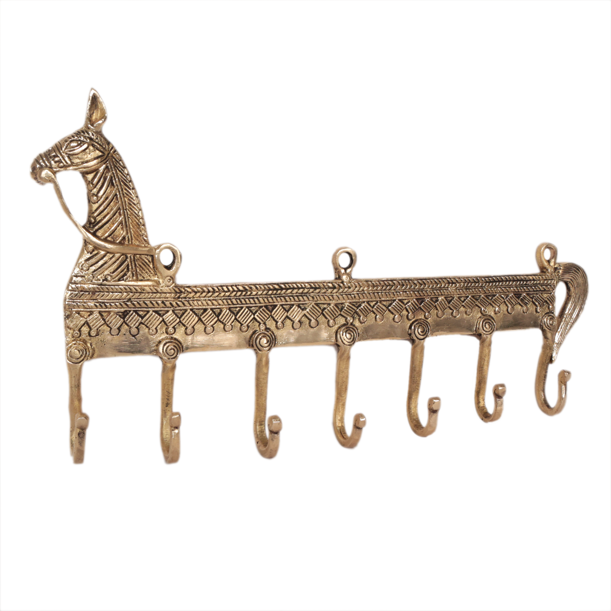 Add a touch of traditional charm and practicality to your home with this Brass Horse Keychain Holder Wall Hanging. Crafted from high-quality solid brass, this beautiful wall key holder features an elegant horse design that enhances the décor of your entrance, hallway, or living space. The antique brass finish gives it a classic Indian handicraft look that suits both modern and traditional homes.