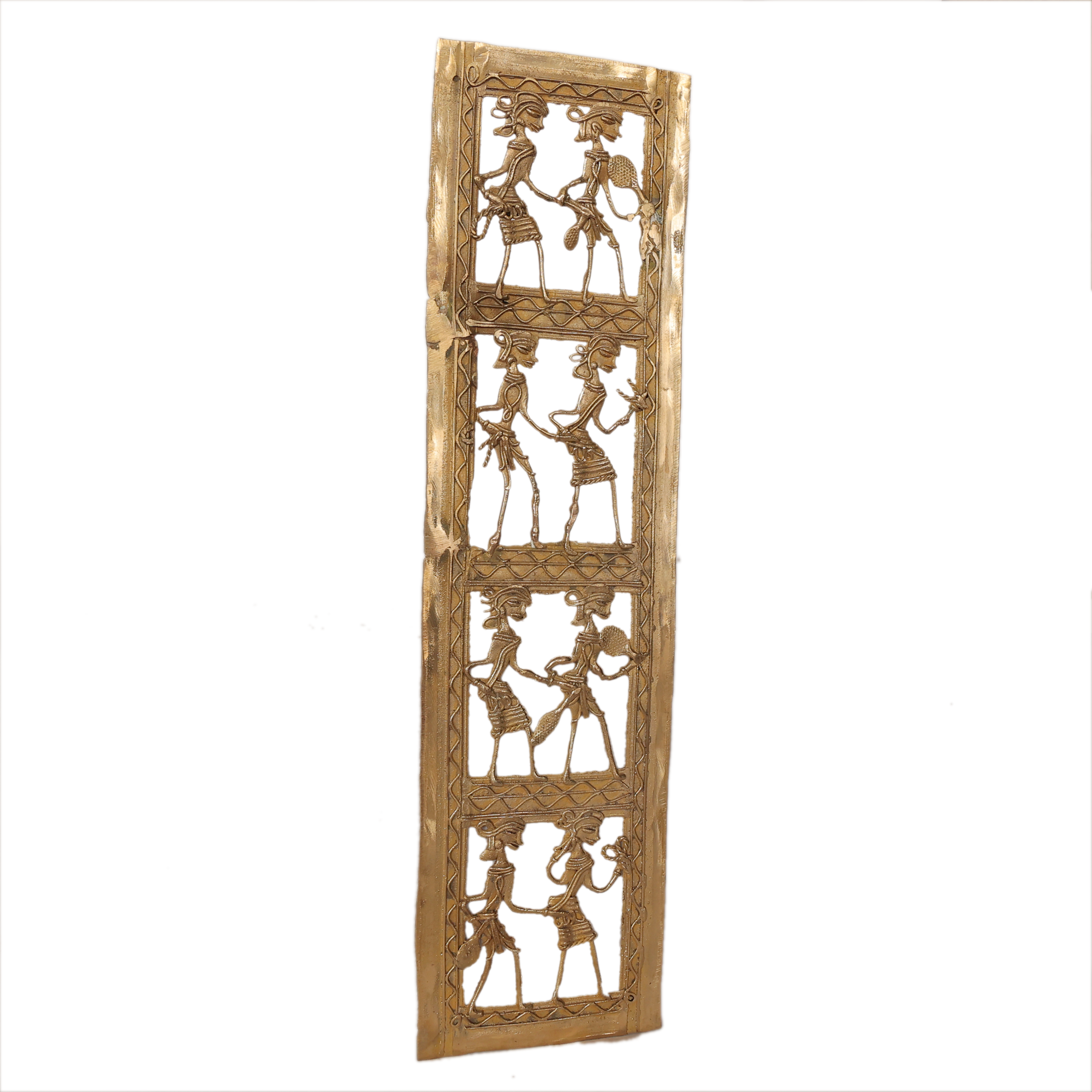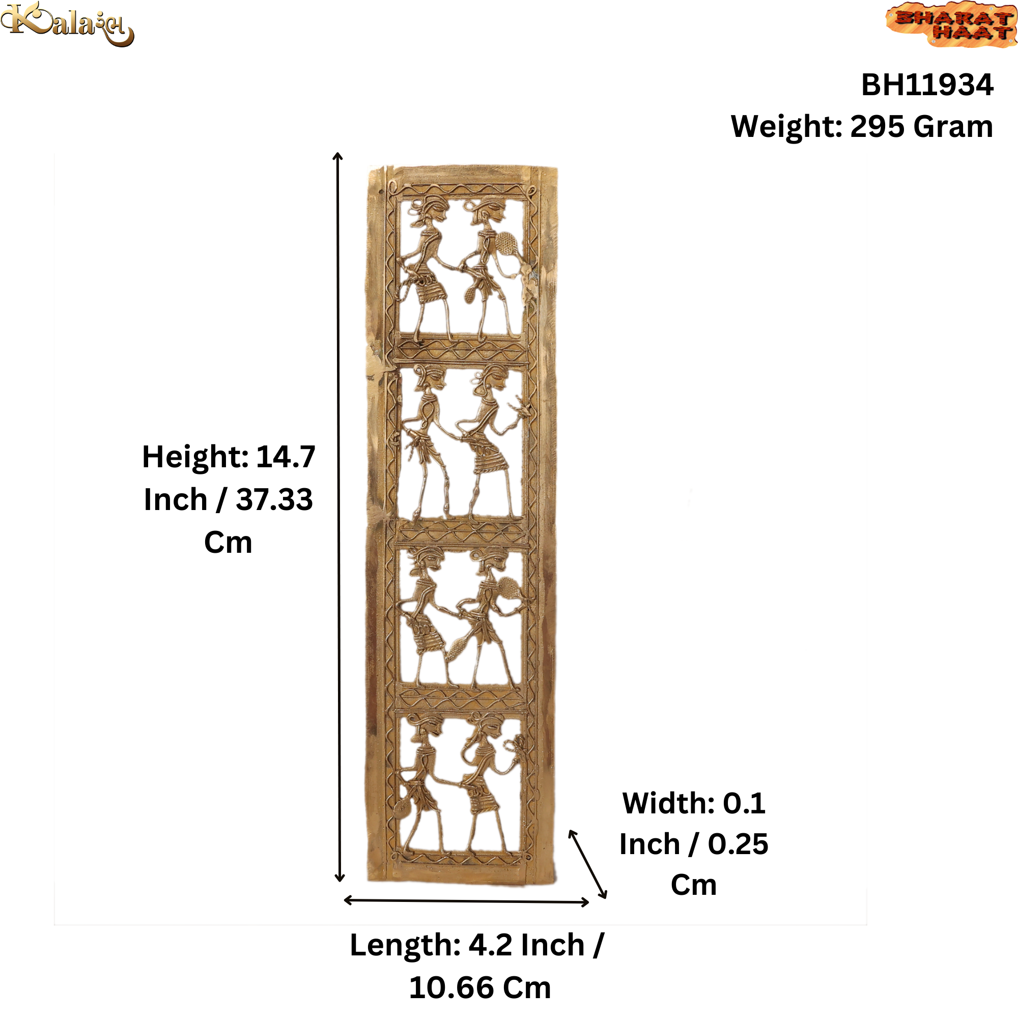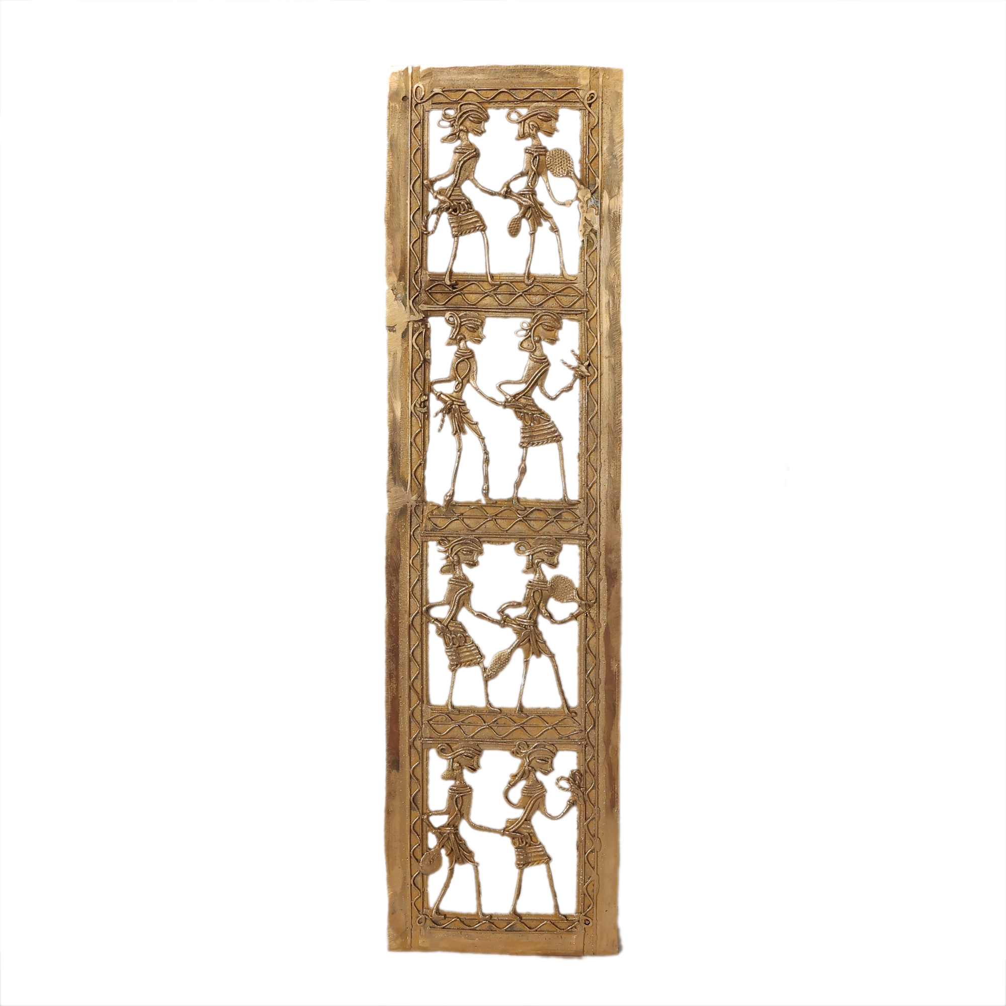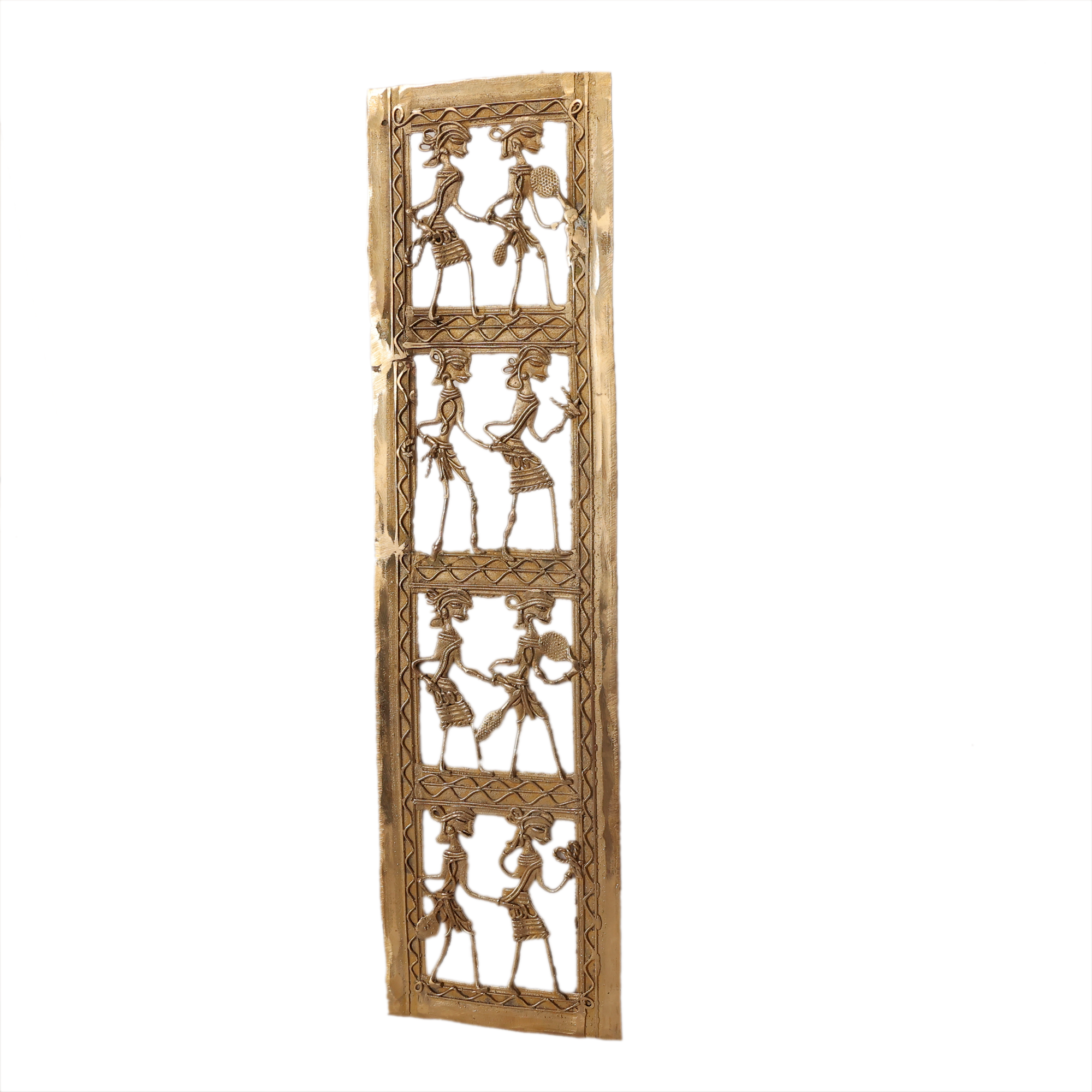 Made from premium quality brass, this wall frame features detailed handcrafted tribal artwork that reflects the skill and creativity of traditional artisans. The elegant and slim design makes it a perfect decorative element for both modern and traditional interior spaces.