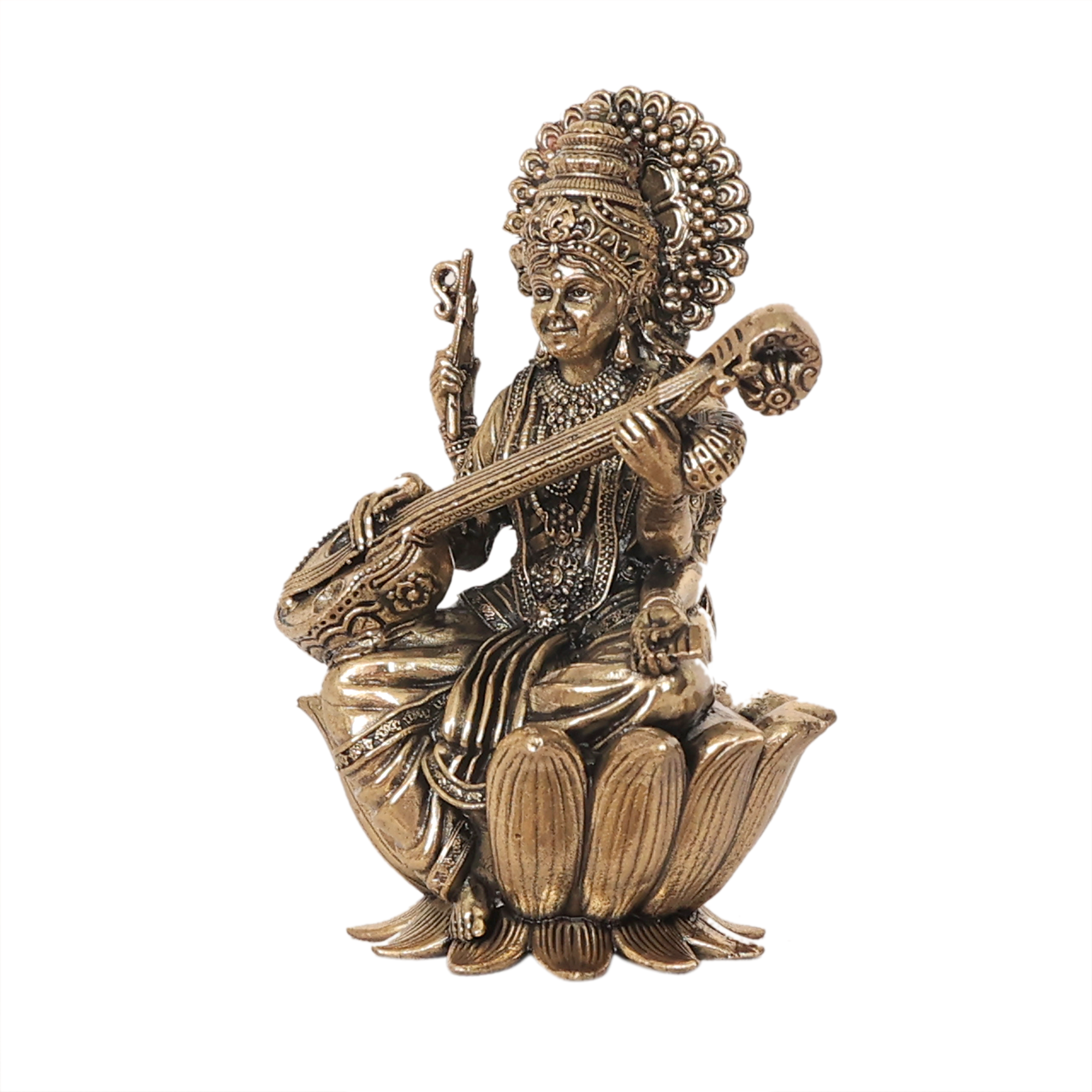 Small Goddess Saraswati Murti for Pooja, Study Table & Office Desk BH11980