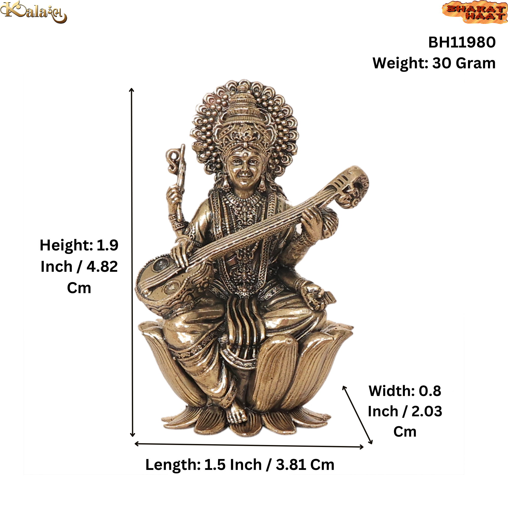 This compact idol measures 1.5 x 0.8 x 1.9 inches (3.81 x 2.03 x 4.82 cm) and weighs only 30 grams, making it perfect for home mandir, study table, office desk, bookshelf or car dashboard. The miniature size makes it easy to place in small spaces while still adding a spiritual and decorative touch.