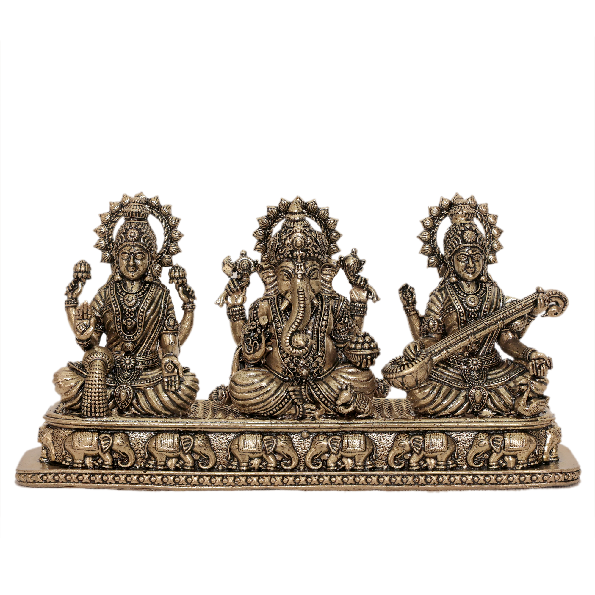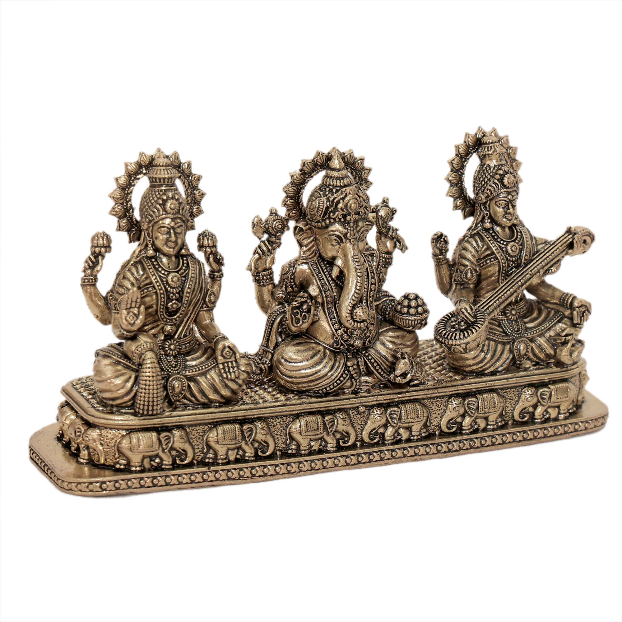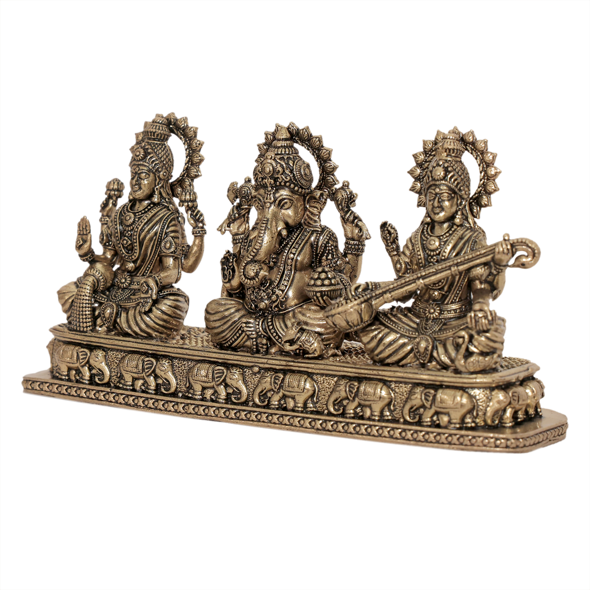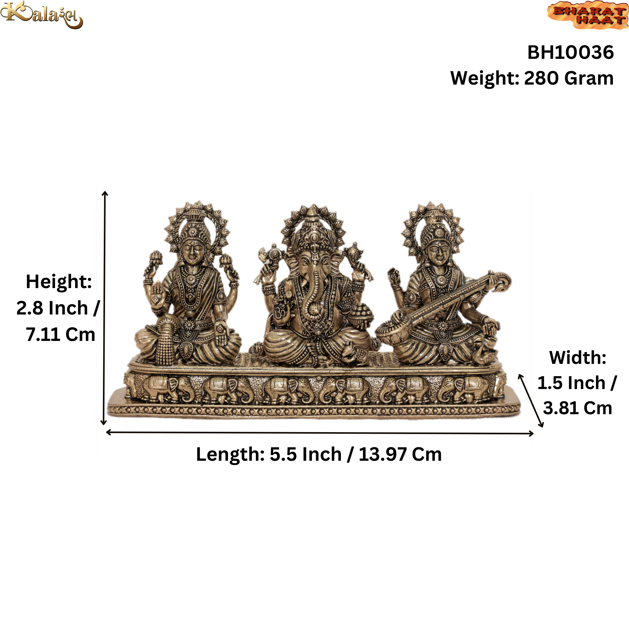 Decorative Brass Ganesha Lakshmi Saraswati Murti for Pooja & Diwali Decoration BH10036
