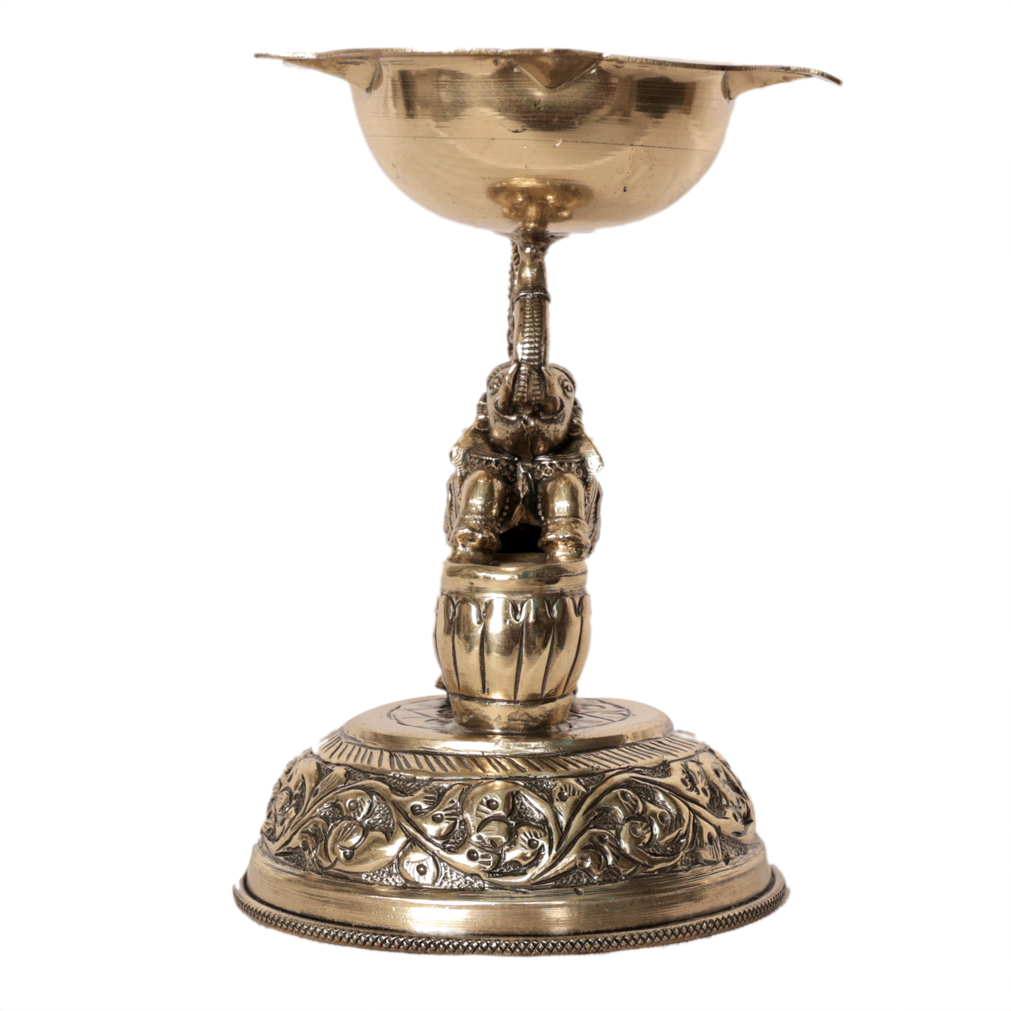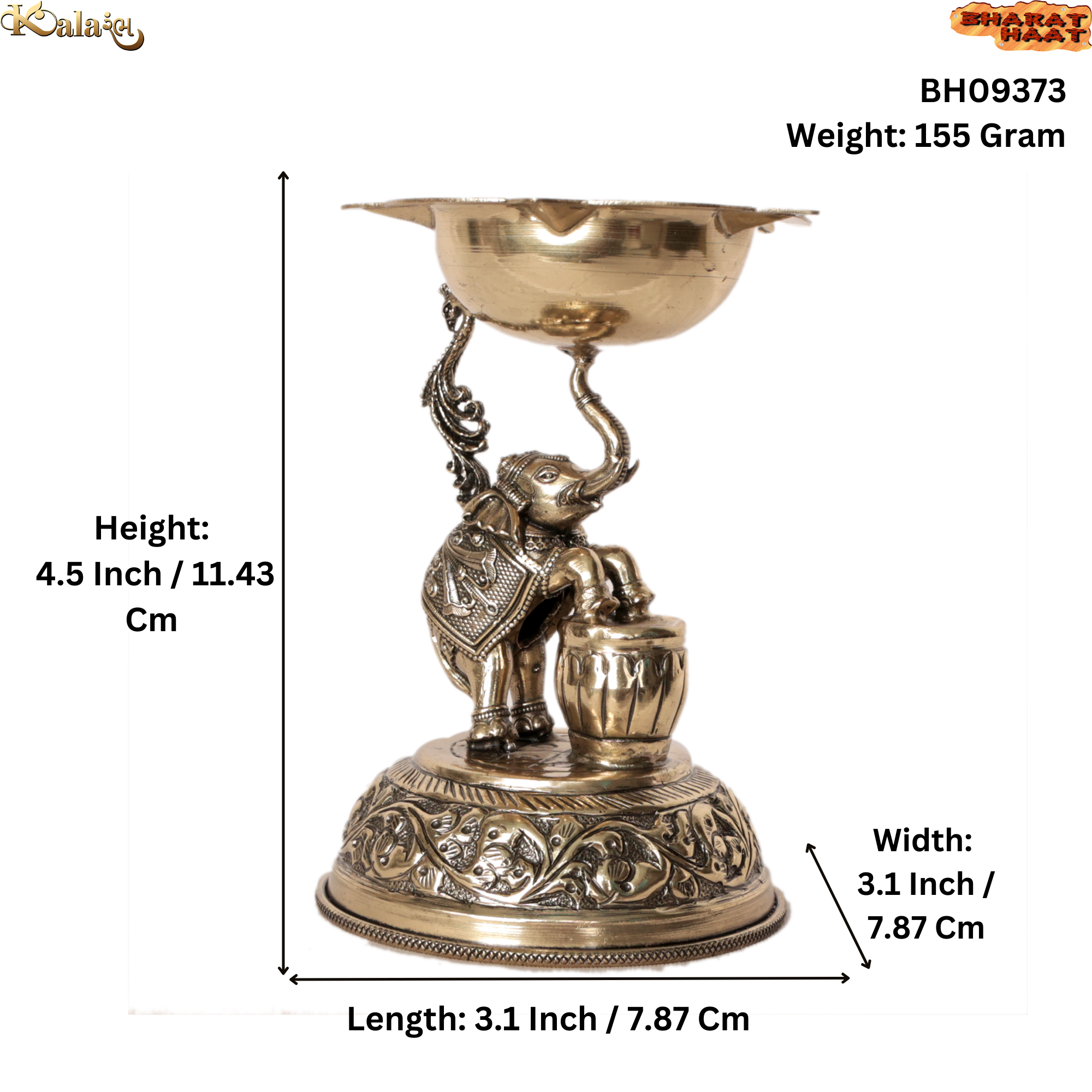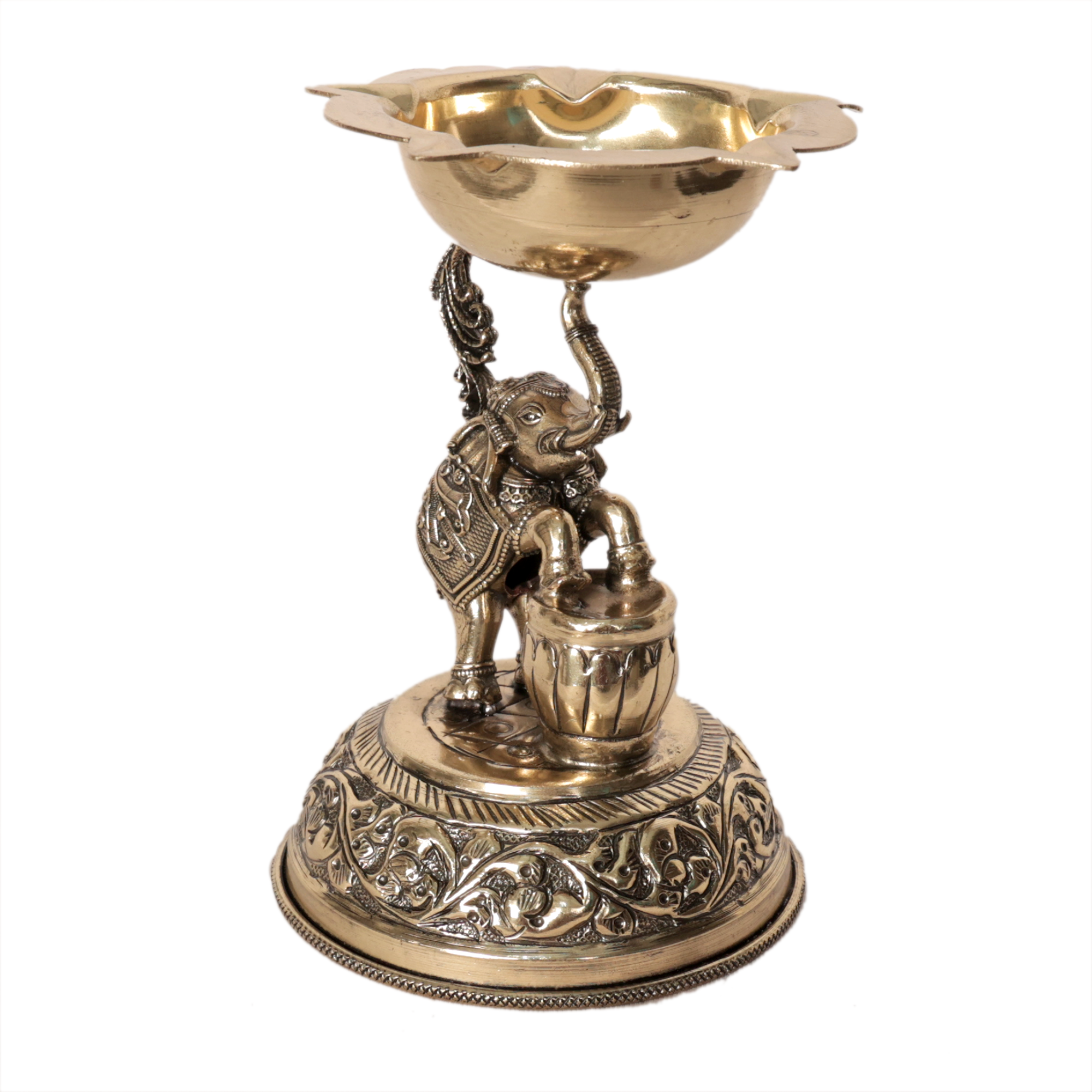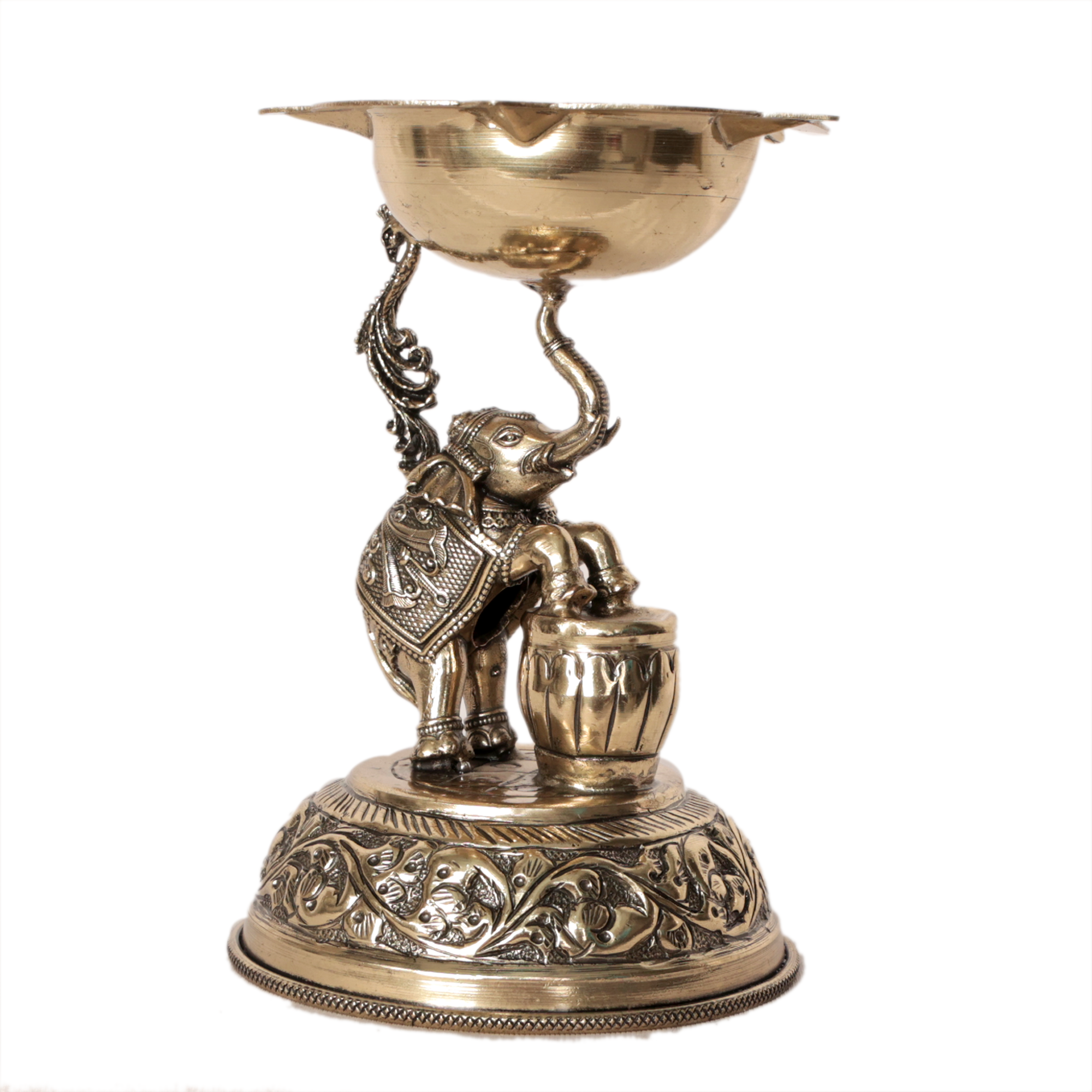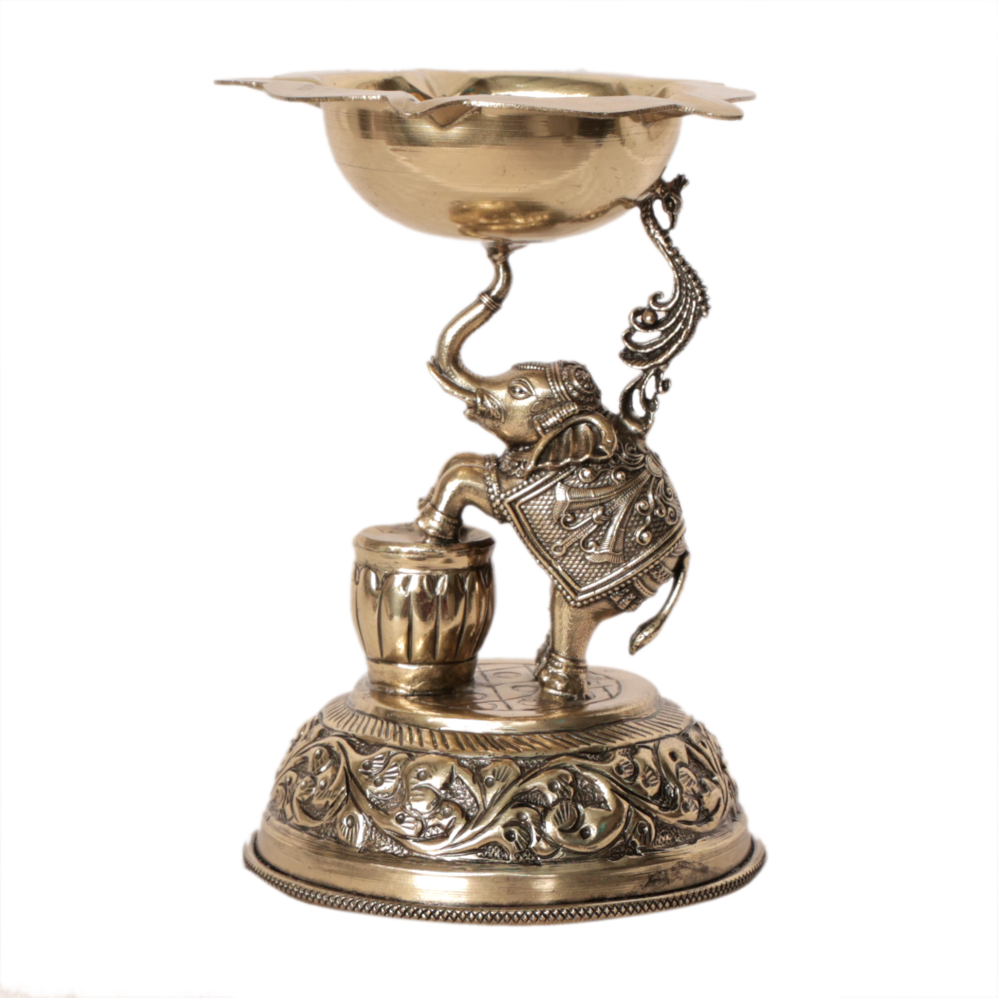 Brass Elephant Deepak | Decorative Brass Oil Lamp with Elephant Design for Pooja BH09373