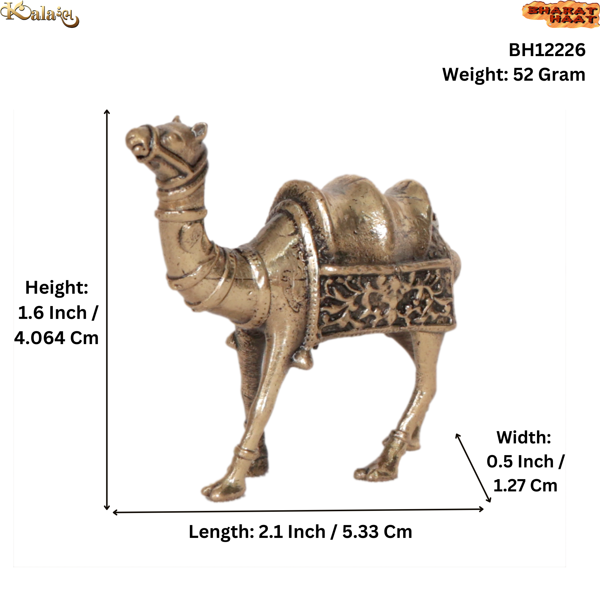 • Handcrafted brass camel figurine made by skilled Indian artisans. • Made from high-quality brass for durability and long-lasting shine. • Detailed camel design that reflects traditional Indian handicraft style. • Perfect decorative showpiece for home, office desk, shelves, or showcase. • Compact size makes it easy to place anywhere in your décor space. • Ideal gift for housewarming, festivals, and handicraft lovers.