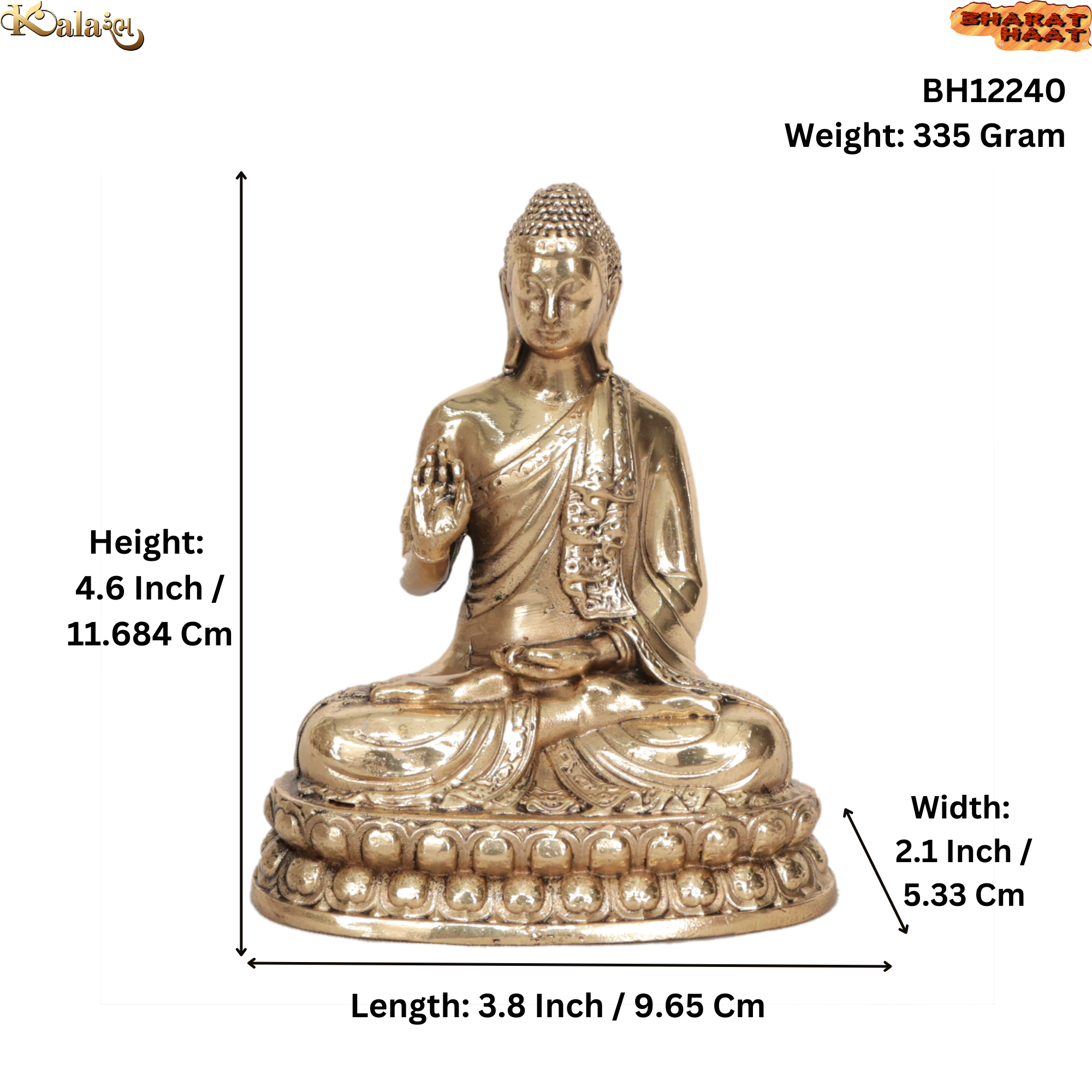 Design: Beautifully crafted Gautam Buddha idol with fine detailing and a smooth brass finish, symbolizing peace, harmony, and spiritual calmness.