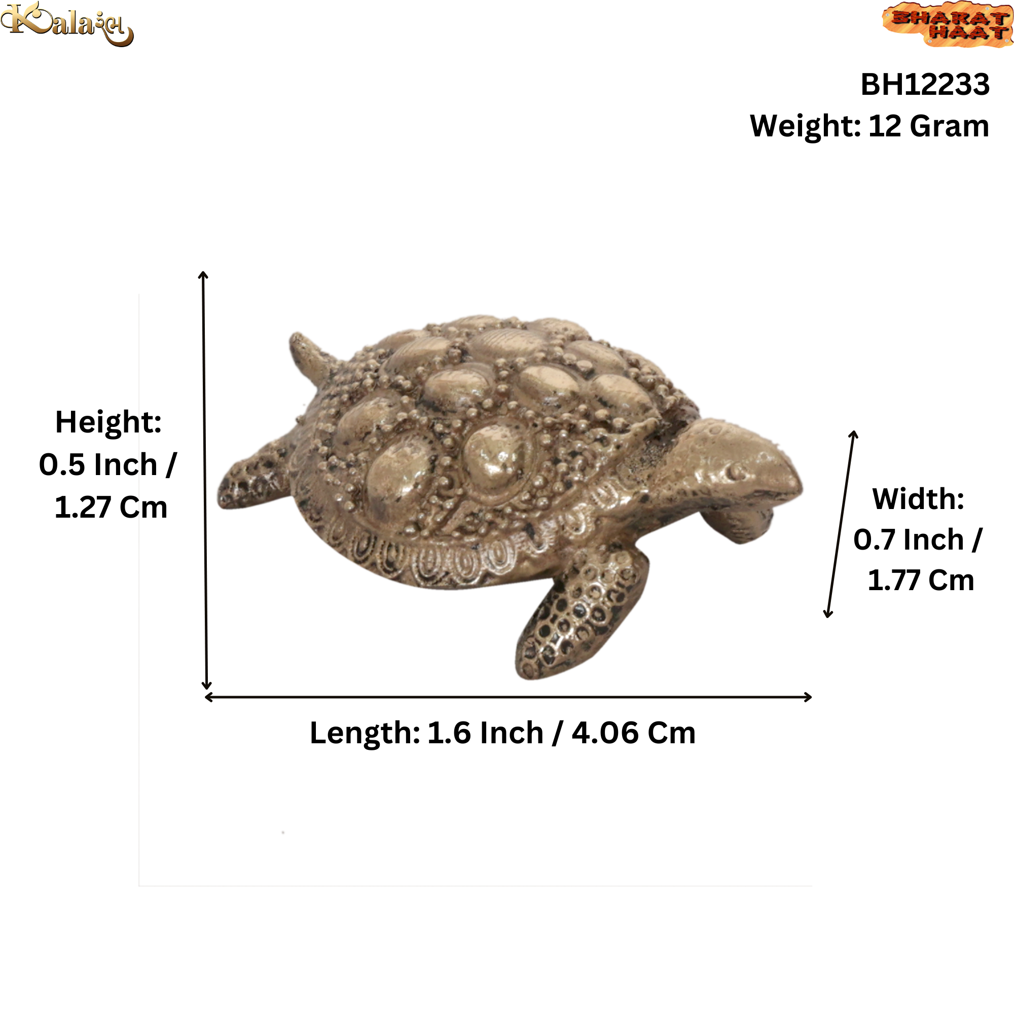• Handcrafted mini brass tortoise (kachhua) made using traditional Indian craftsmanship.