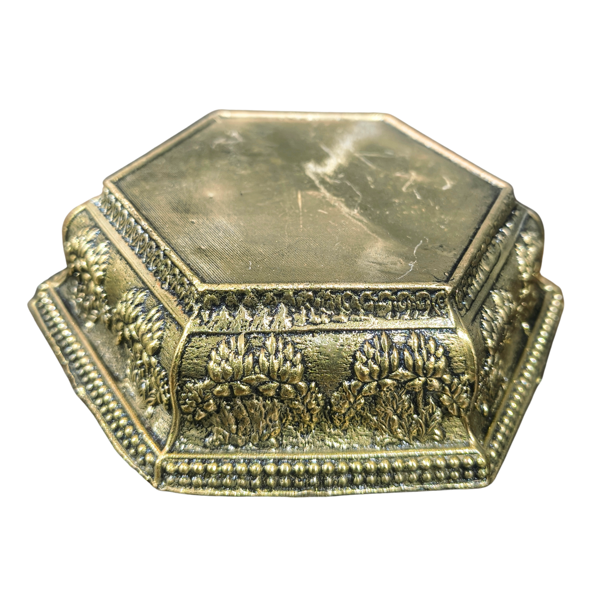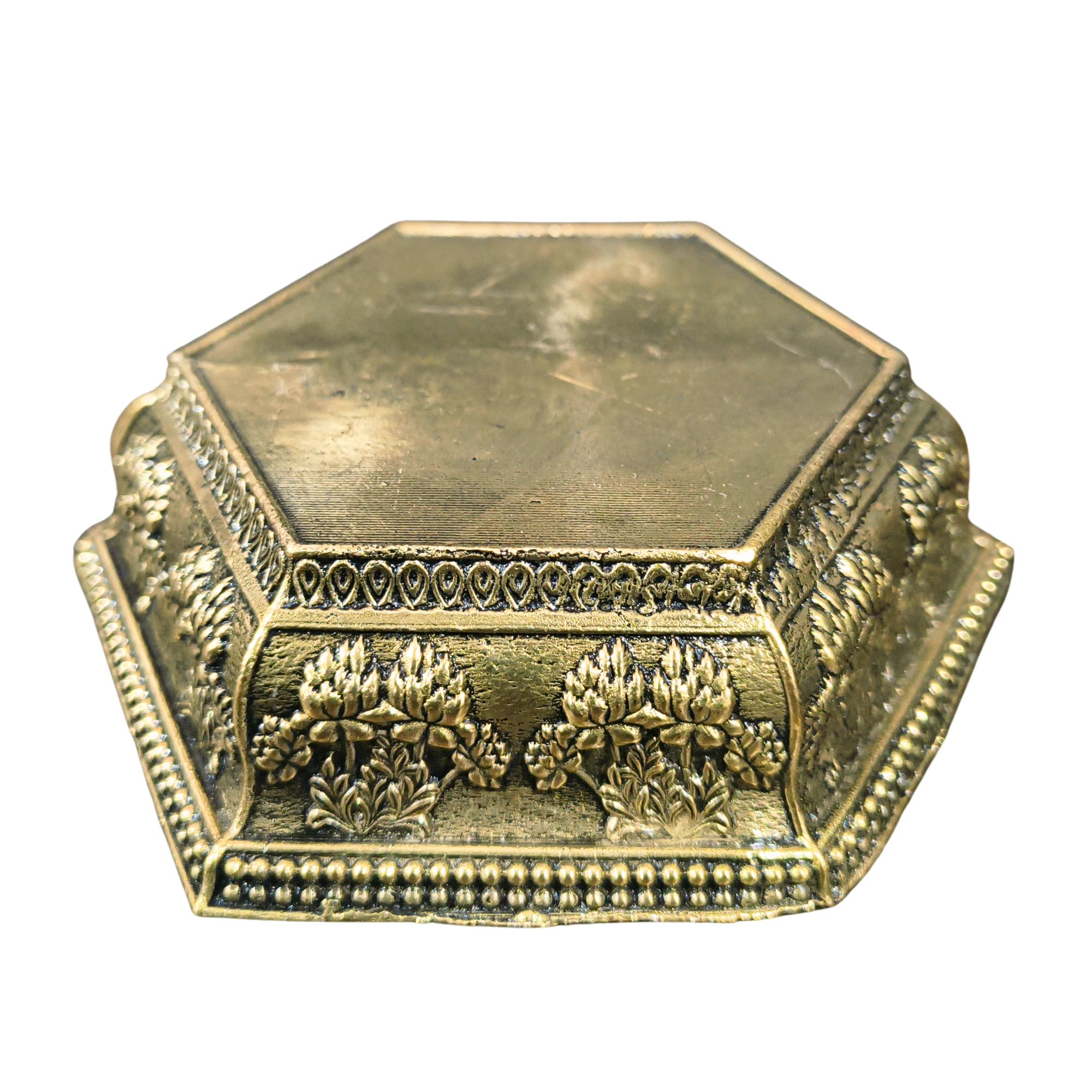 A bajath or chowki is commonly used in Hindu rituals to place idols, diya, kalash, or other pooja essentials slightly elevated during prayers. This brass chowki provides a stable and sacred platform, making it perfect for home temples, pooja rooms, and spiritual setups.