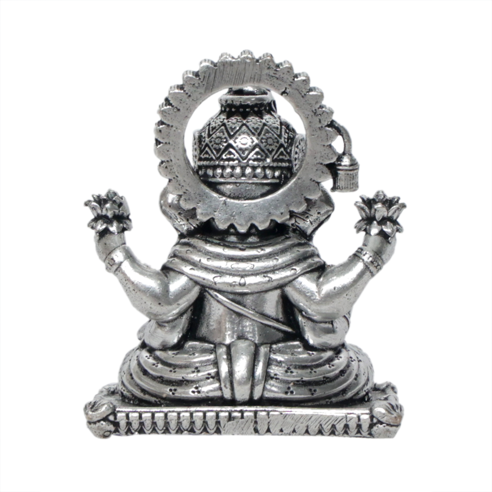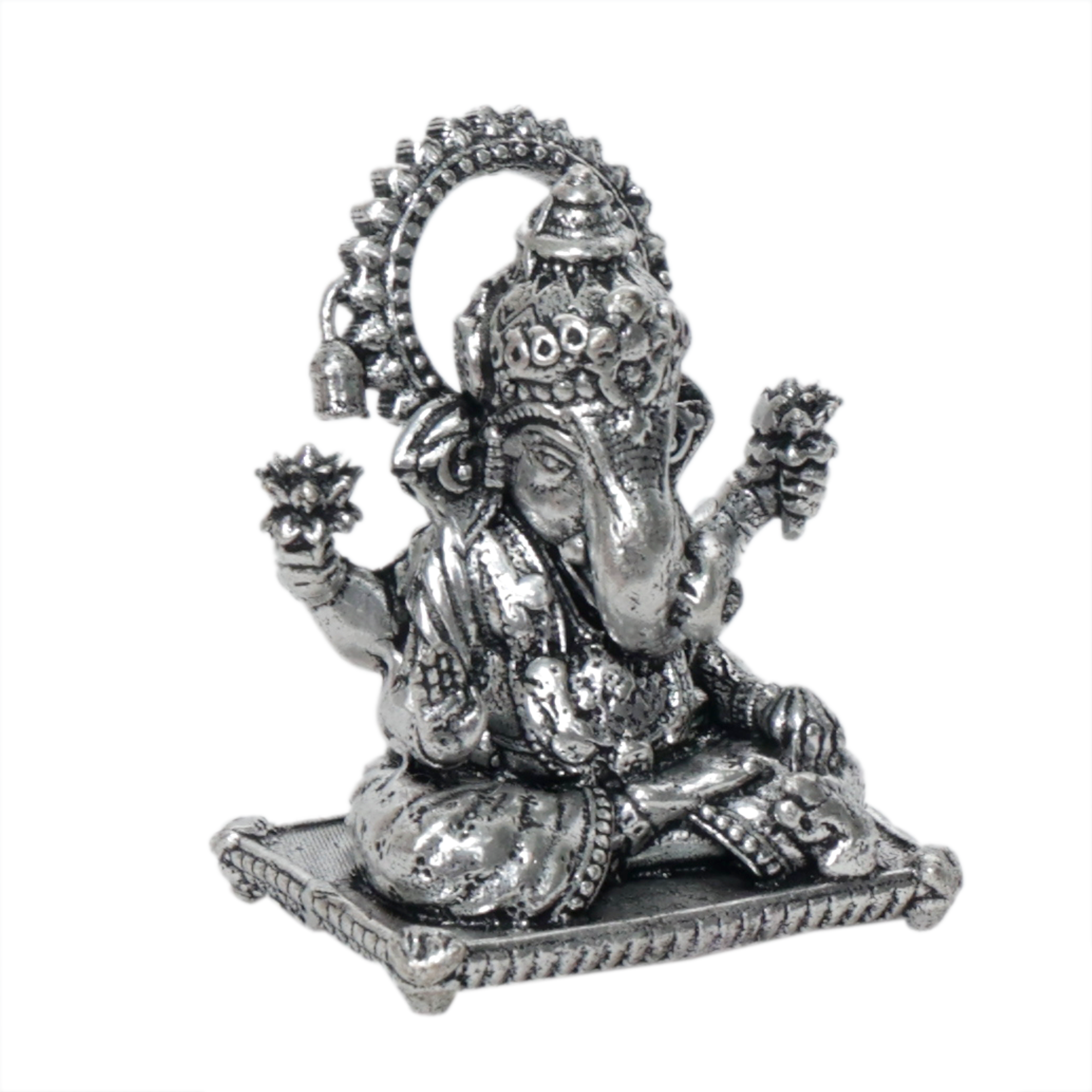 This mini Ganpati murti is crafted with fine detailing and a polished silver finish that enhances its traditional and spiritual appearance. Its compact design makes it ideal for placing in home temples, pooja rooms, office desks, study tables, or spiritual corners.