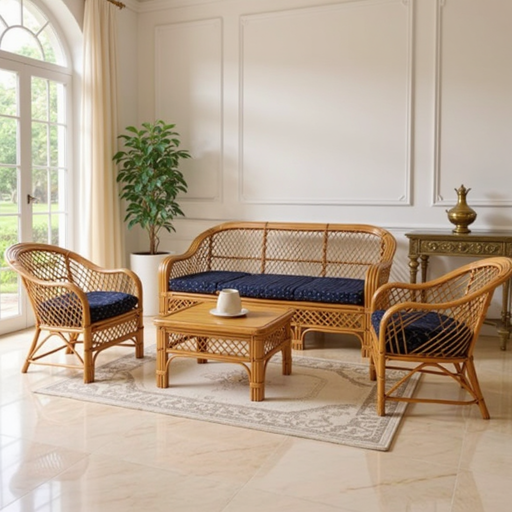 Ratan Bamboo 5 Seater Sofa Pack with Cushion | Brown