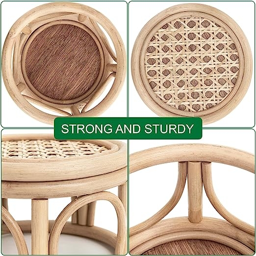 - ???? 【SUITABLE SIZE】: The mini size rattan stool display stand is: 5.5 × 3.5 inches, and the small size of our stand is: 7.0 × 4.0 inches. The wicker plant stand has sturdy and durable structure, its 5 thick stand points to firmly support the plant pot. Ideal for your flowerpots. Note: No flower pots !