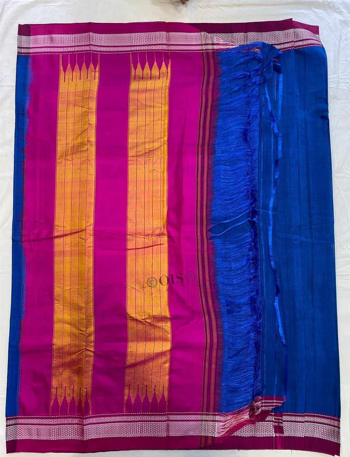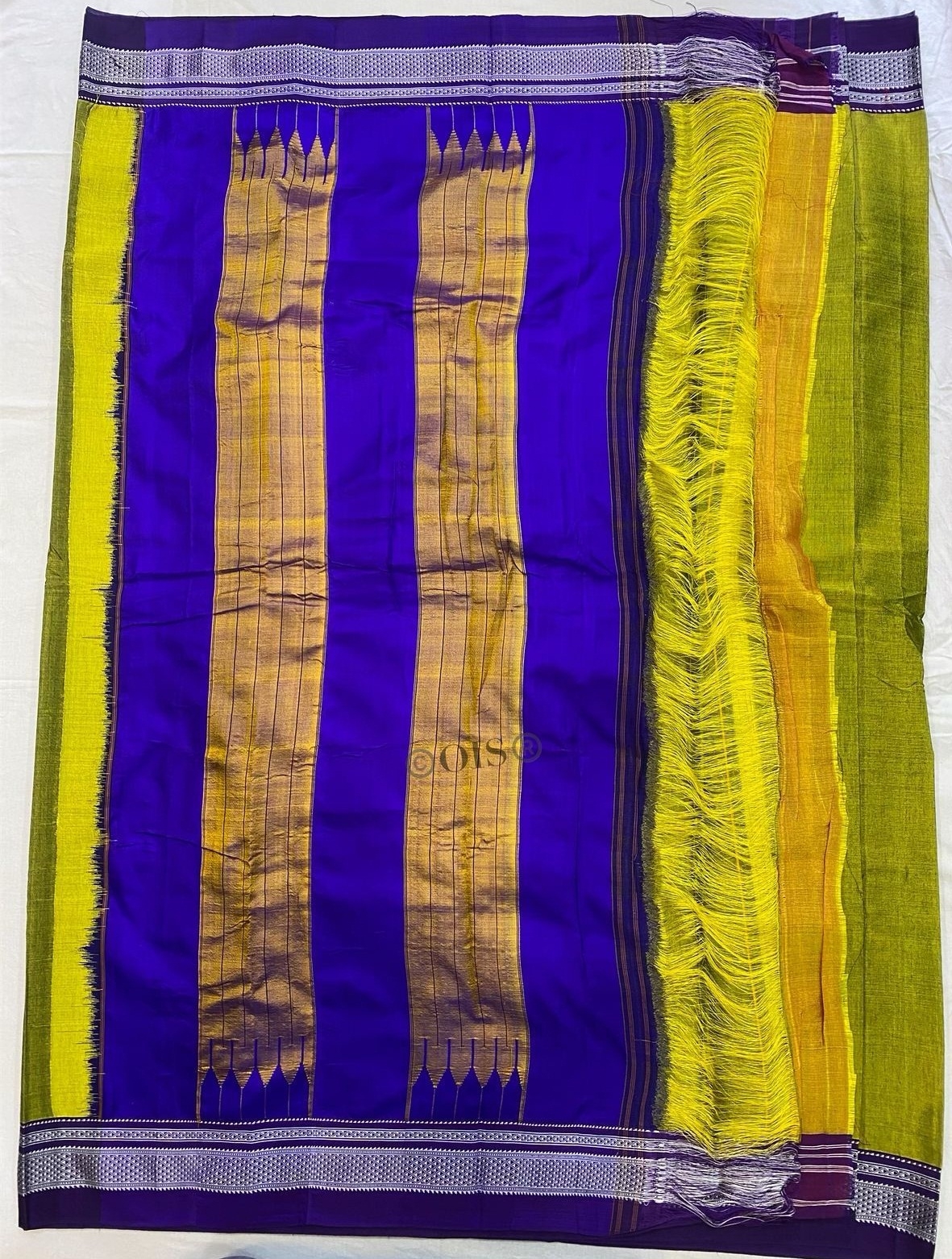 Ilkal Traditional handloom woven saree made by Viscose rayon as warp and cotton as weft. Pure silk is woven in Pallu portion.
