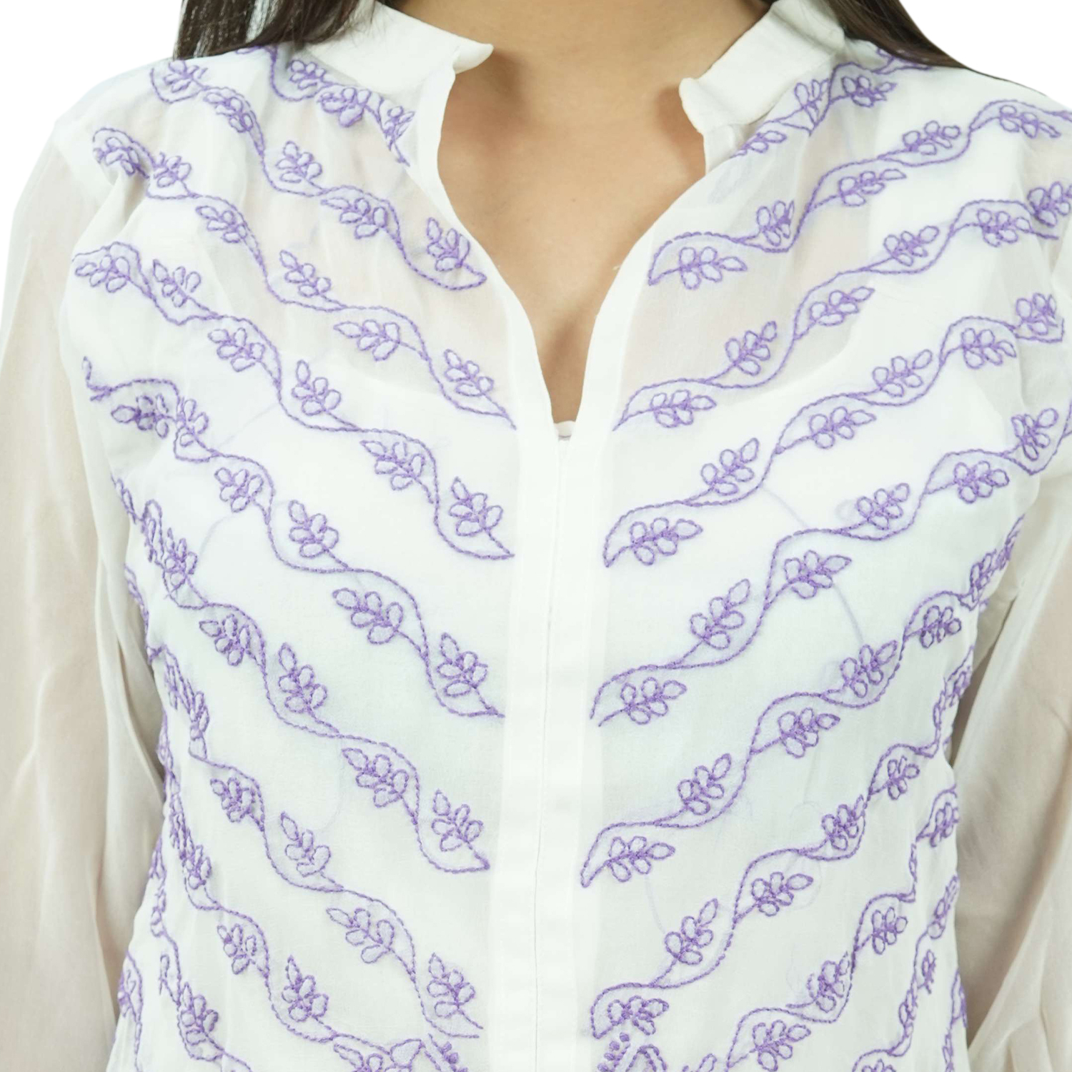 Larg size white cloth purple thread making by hand embroidery keel,kangan, ghas patti , bakhia etc tanke on cloth
