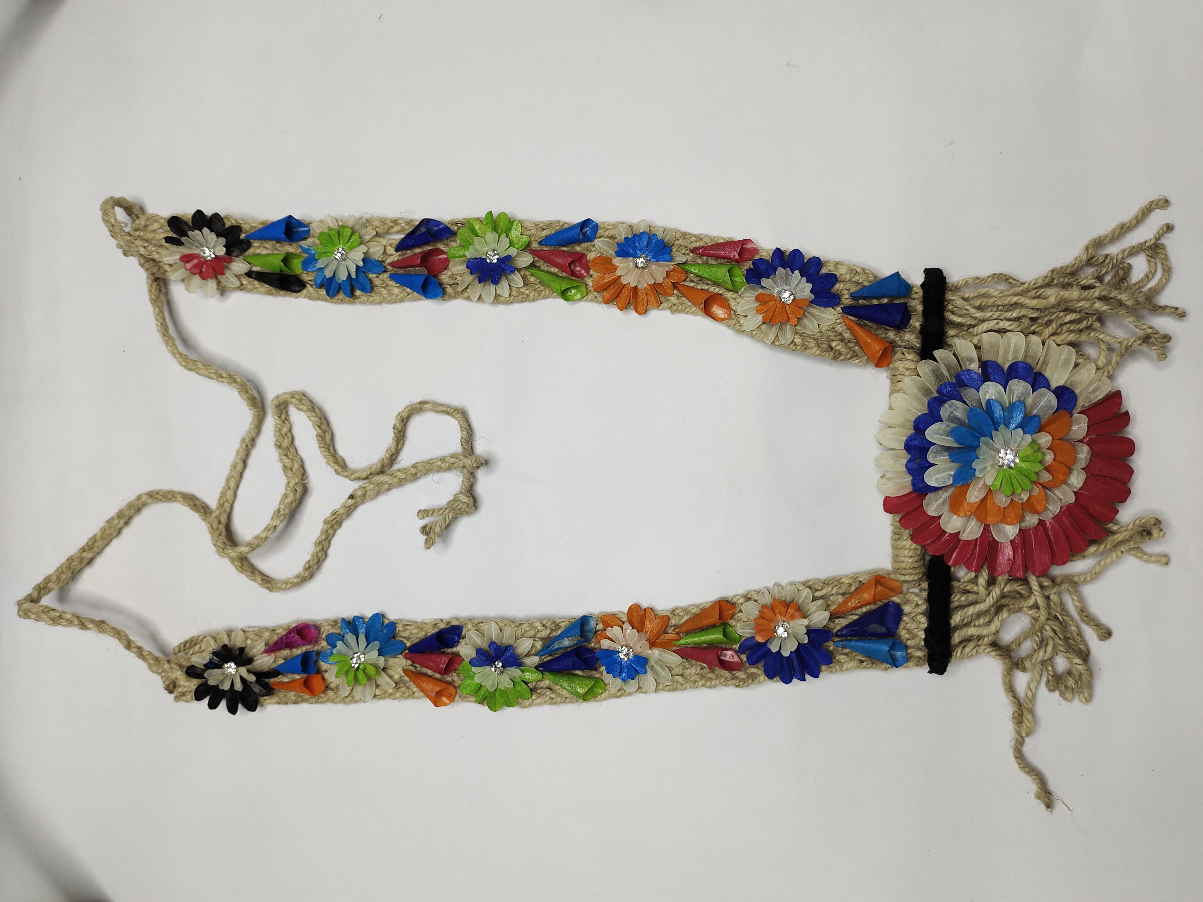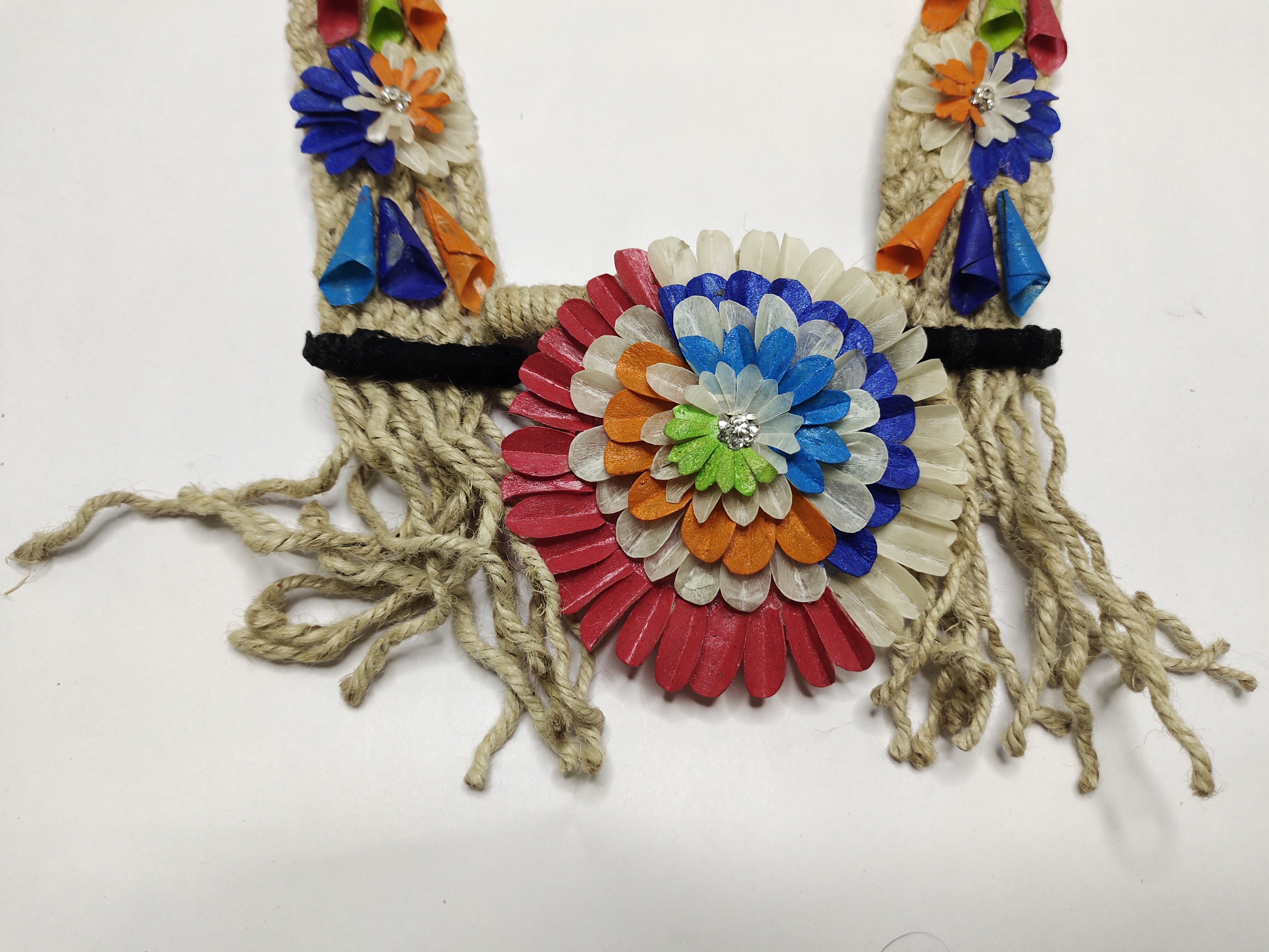 Handmade Long Jute Necklace with Earrings Set | Multi Colour | Fish Scale Embellishments