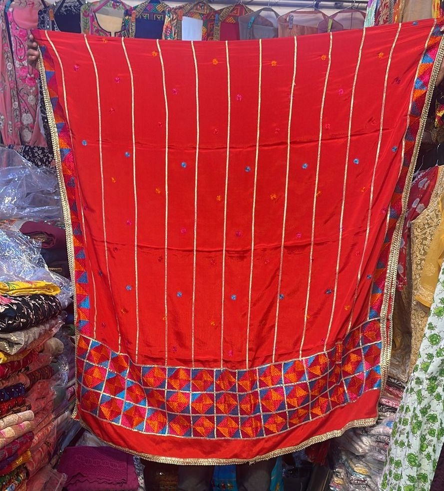 Red colour 3 Pure chinon Chiffon base Hand Embroided Phulkari Dupatta