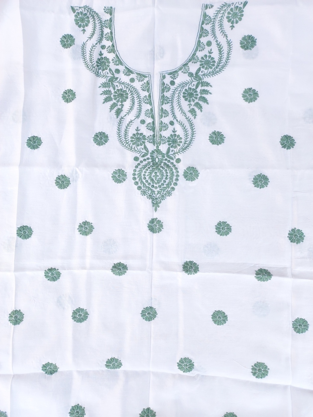 Indulge in the luxury of pure Chikankari hand embroidery adorning our Chanderi Kurta. This Handicraft masterpiece boasts intricate stitches and delicate motifs, adding a touch of artistry to your wardrobe. The serene White hue of the kurta radiates tranquility and purity, making it a versatile choice for any occasion, be it casual gatherings or festive celebrations.