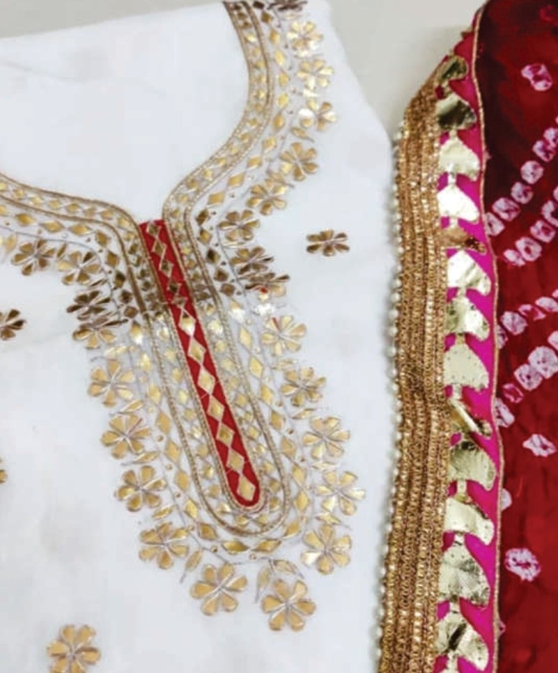 Gota Patti suits beautifully blend traditional craftsmanship with modern fashion sensibilities. The traditional embroidery technique is combined with contemporary design elements, making the suit a perfect choice for both traditional and contemporary occasions.