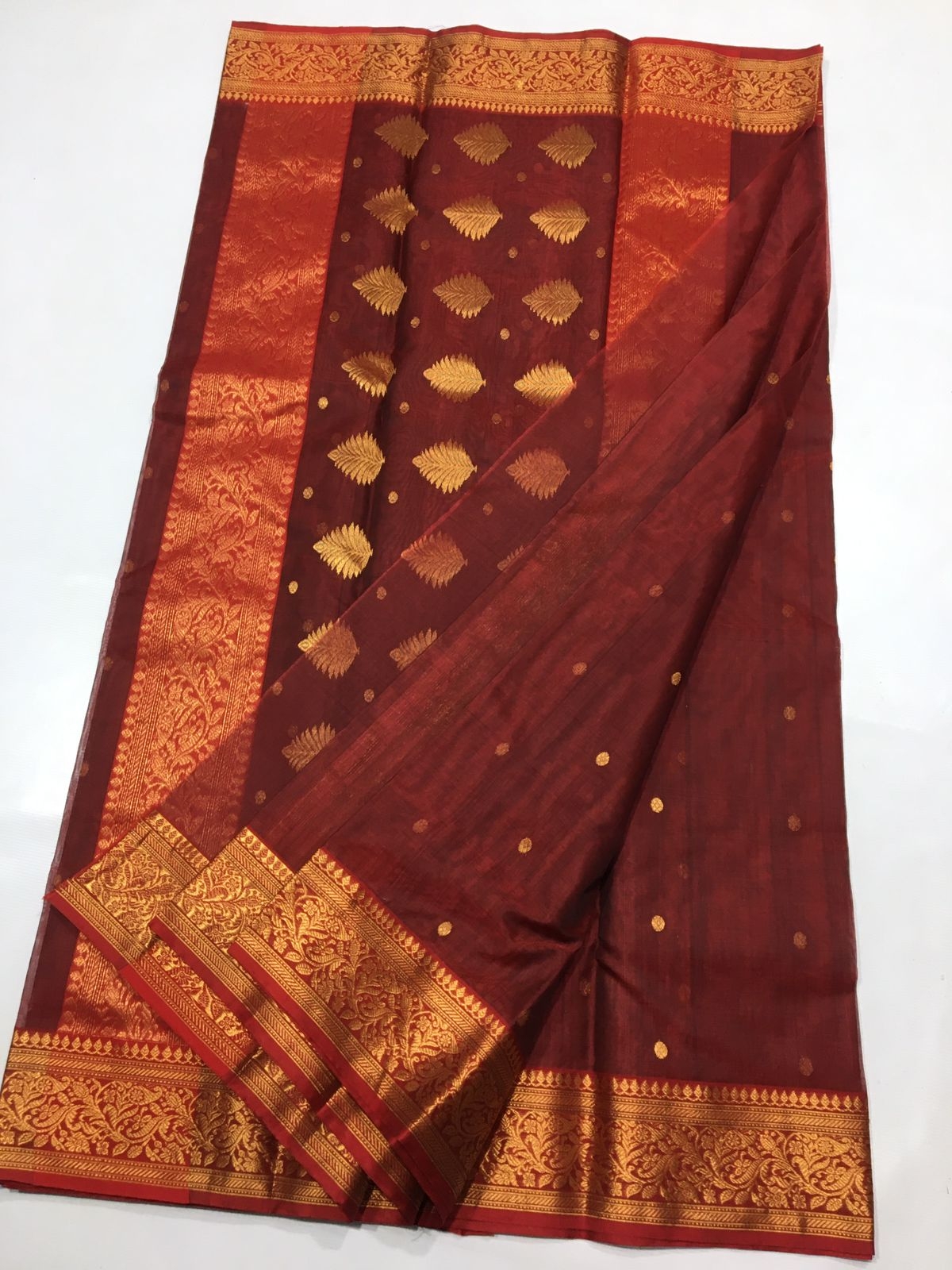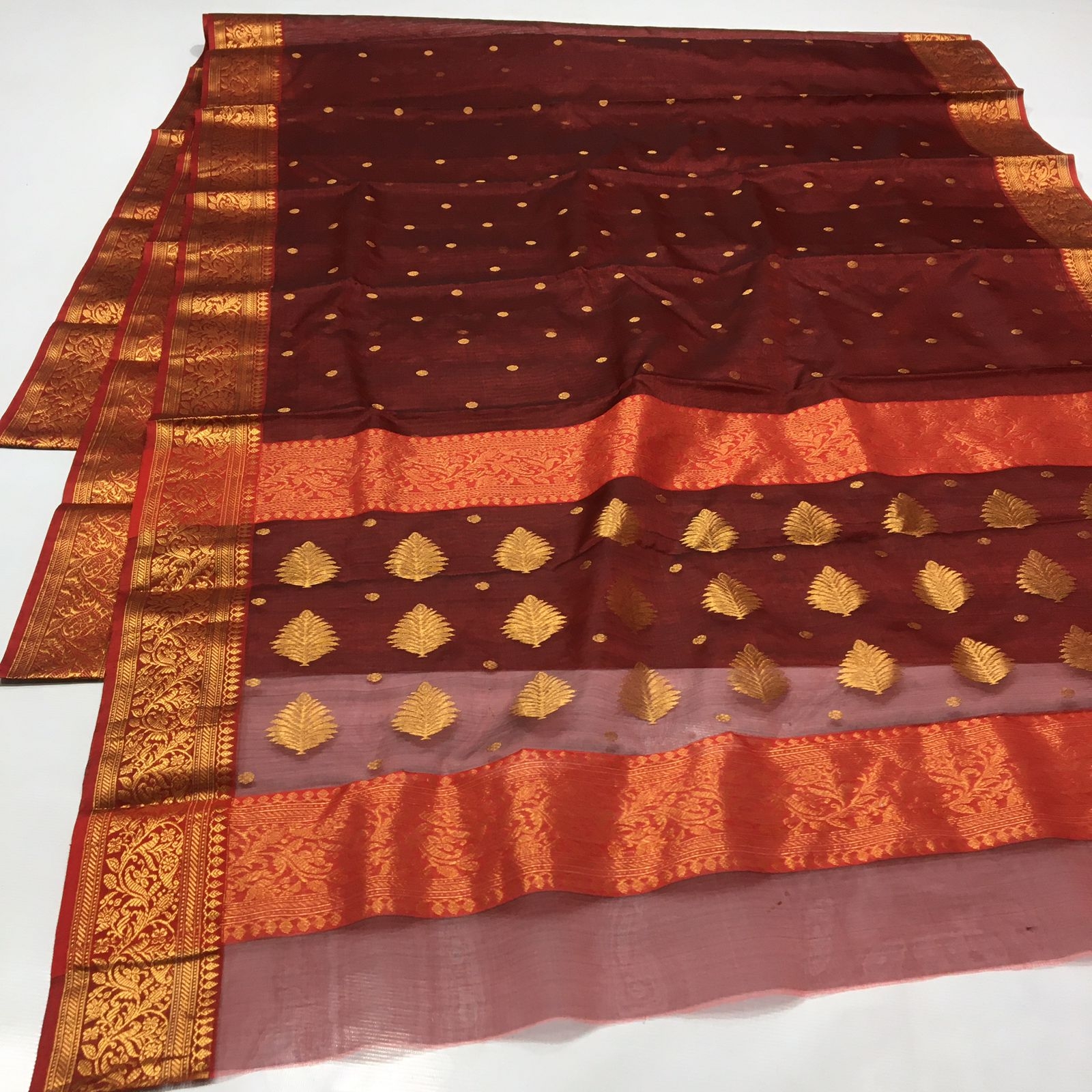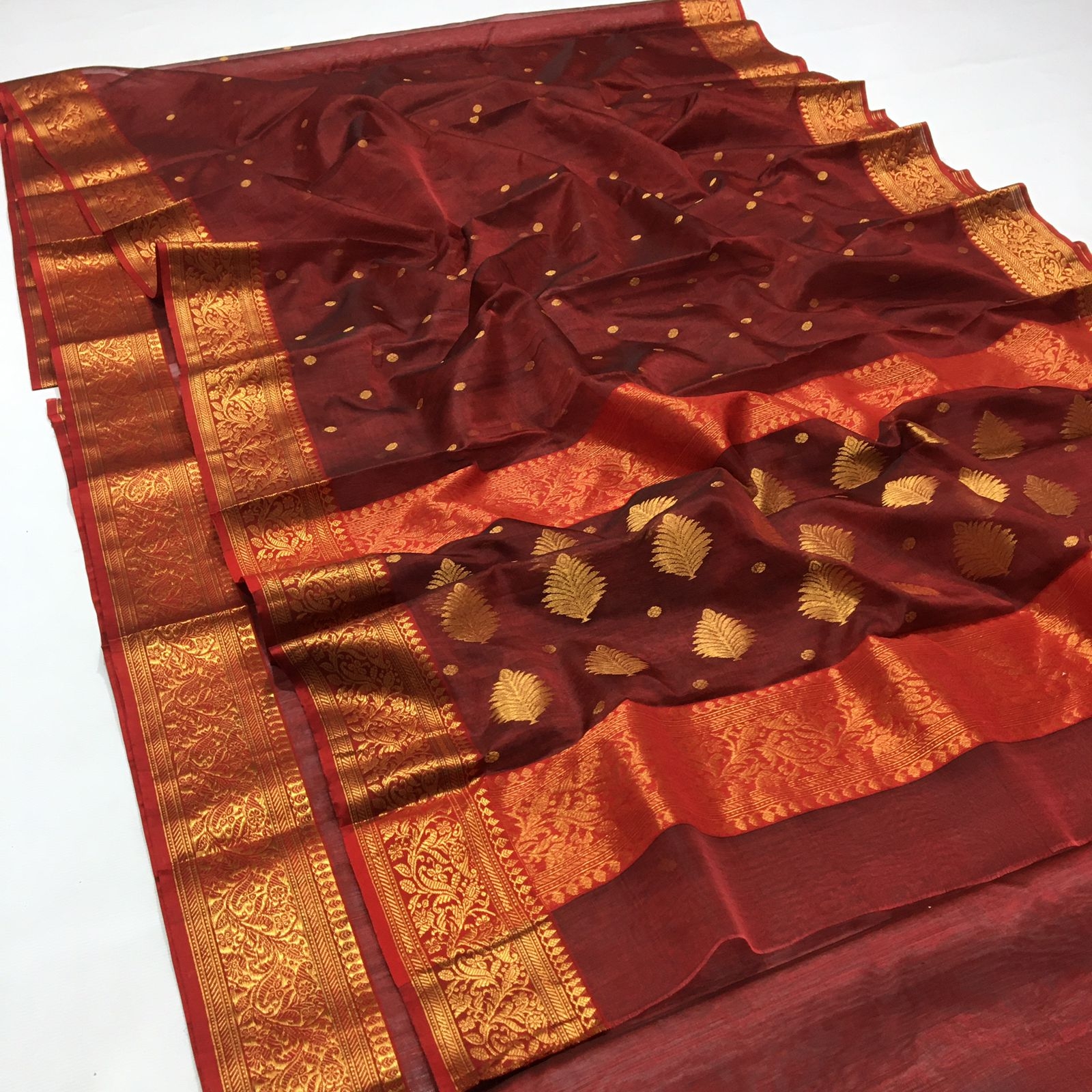 Chanderi Saree Maroon Whicth Golden Zari Border 6.25 mtrs