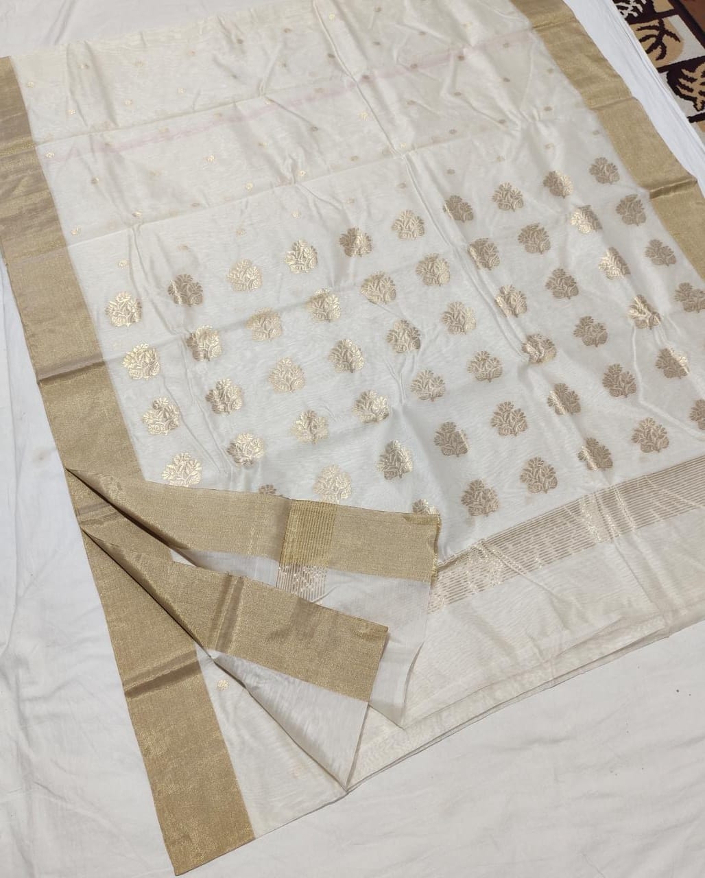 Handloom Chanderi Saree with Golden Zari Work | White