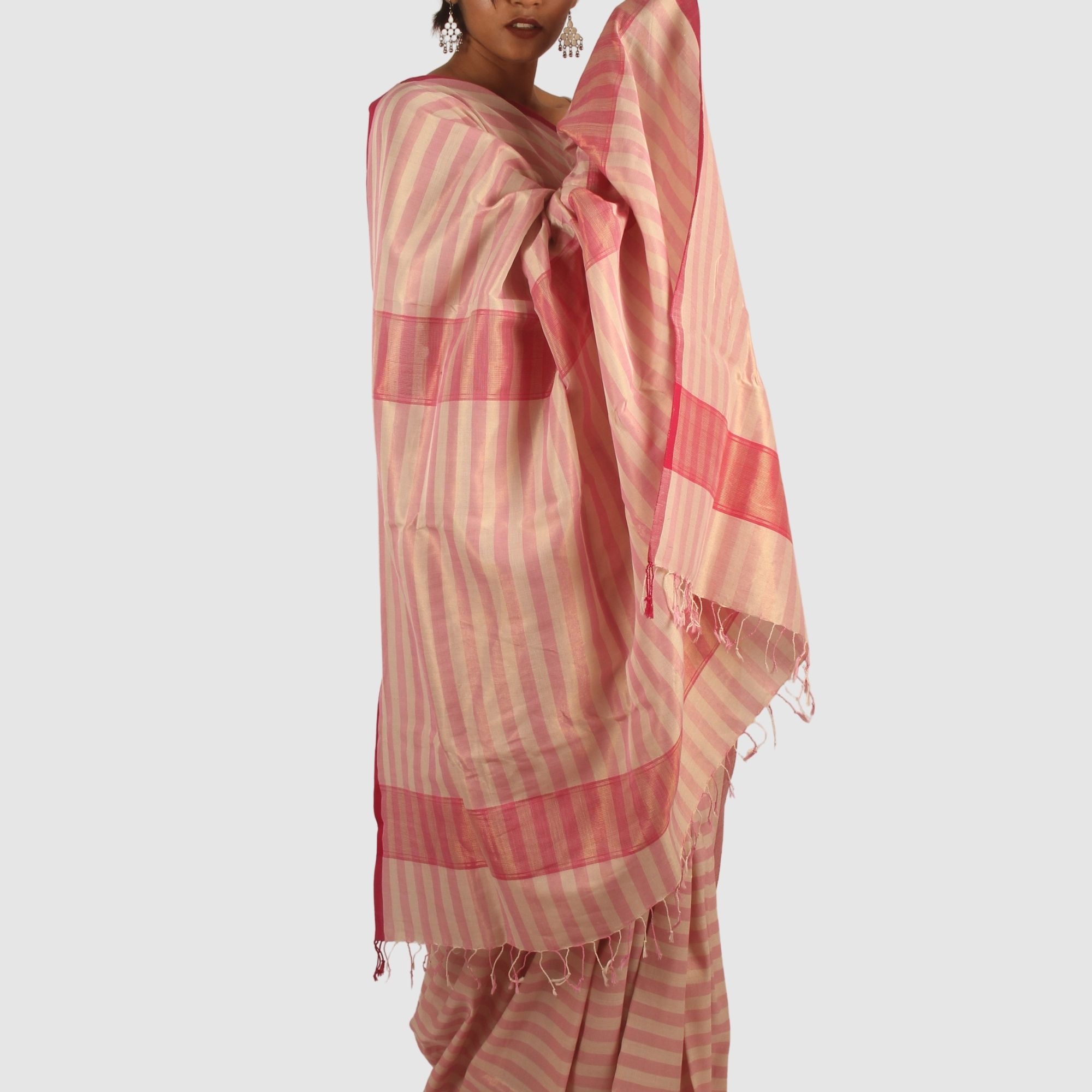 Classic Pink Maheshwari Handloom Cotton Silk Saree with Zari