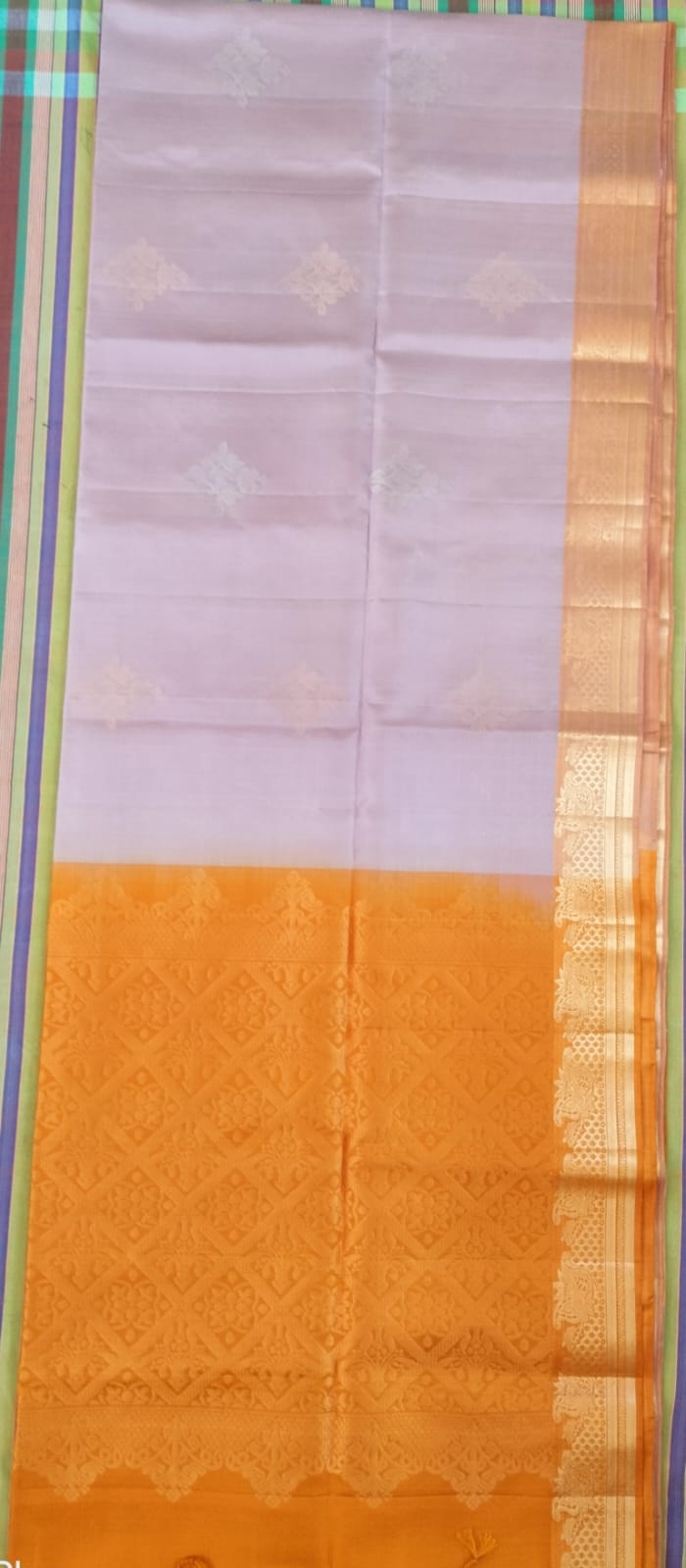 The Covai Silk Saree is also known as Soft Silk Sarees which are woven in Coimbatore district of Tamilnadu. In this Saree variety instead of gum, plain water is applied and rubbed thoroughly by the weaver to get the soft handle with improved luster on the saree. These Sarees are woven with large floral contemporary designs with fancy colors. As the name implies these Sarees are very soft handle and light weight which makes the wearer so comfortable.