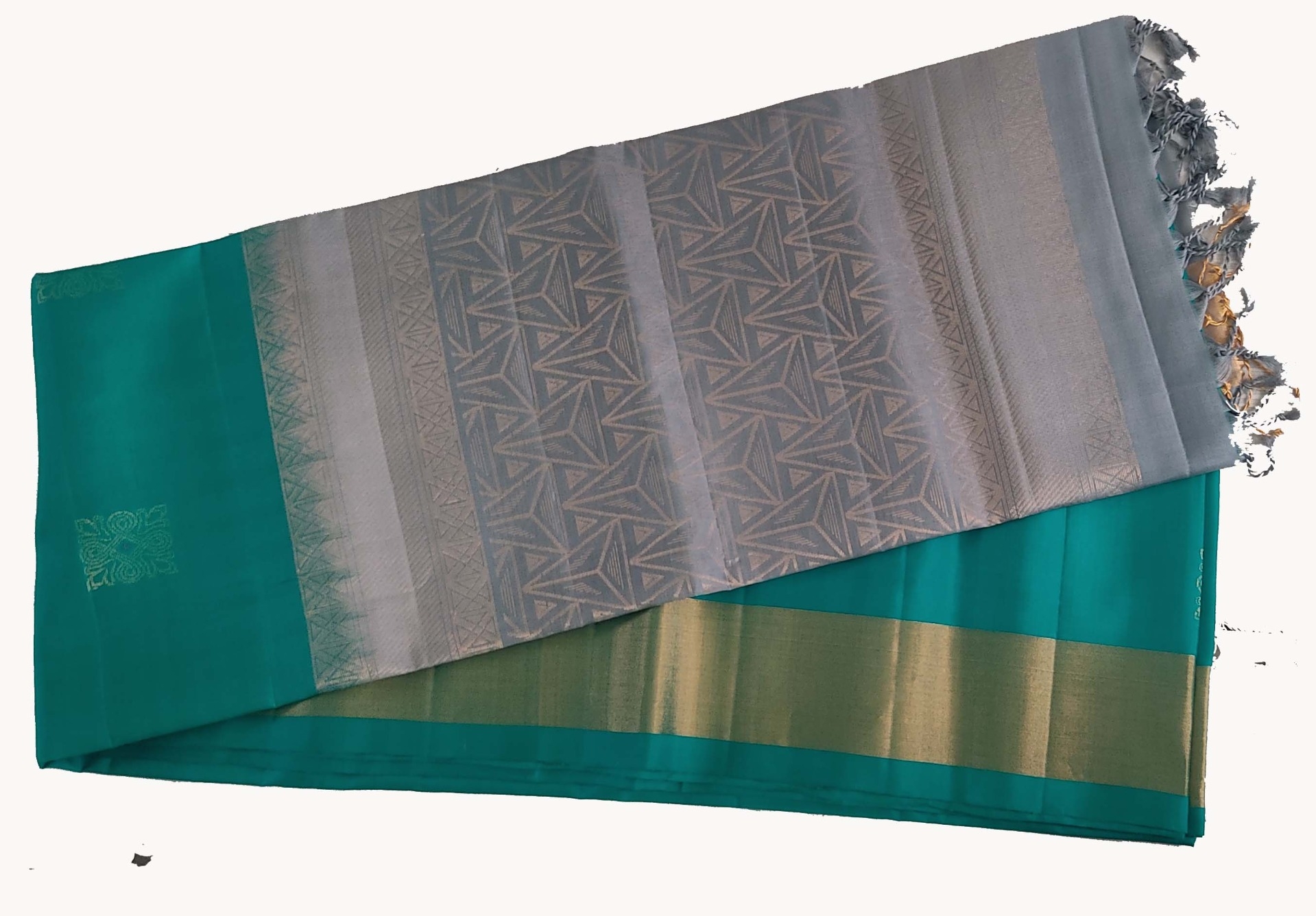 The Covai Silk Saree is also known as Soft Silk Sarees which are woven in Coimbatore district of Tamilnadu. In this Saree variety instead of gum, plain water is applied and rubbed thoroughly by the weaver to get the soft handle with improved luster on the saree. These Sarees are woven with large floral contemporary designs with fancy colors. As the name implies these Sarees are very soft handle and light weight which makes the wearer so comfortable.