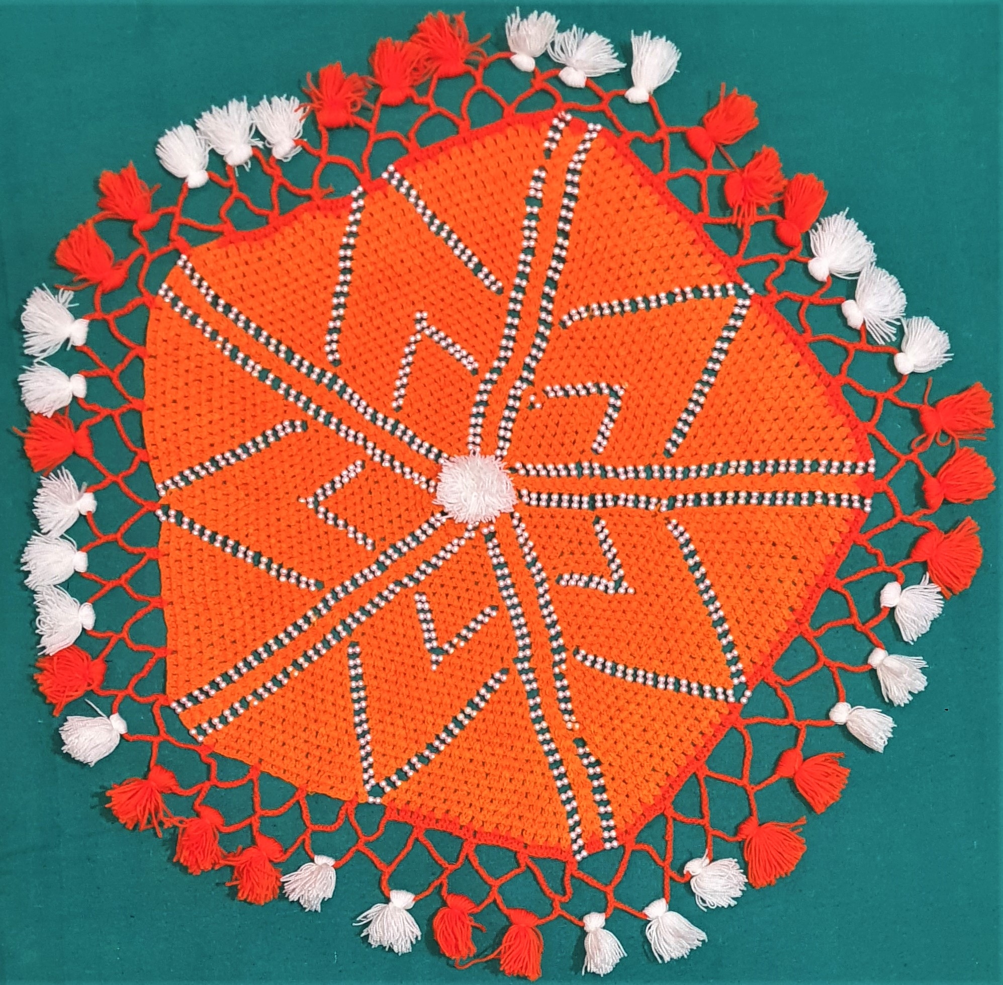 FRUIT COVER USED FOR COVER THE FRUIT BOWL . IT IS MED BY COLOURFUL WOOLEN THREADS .