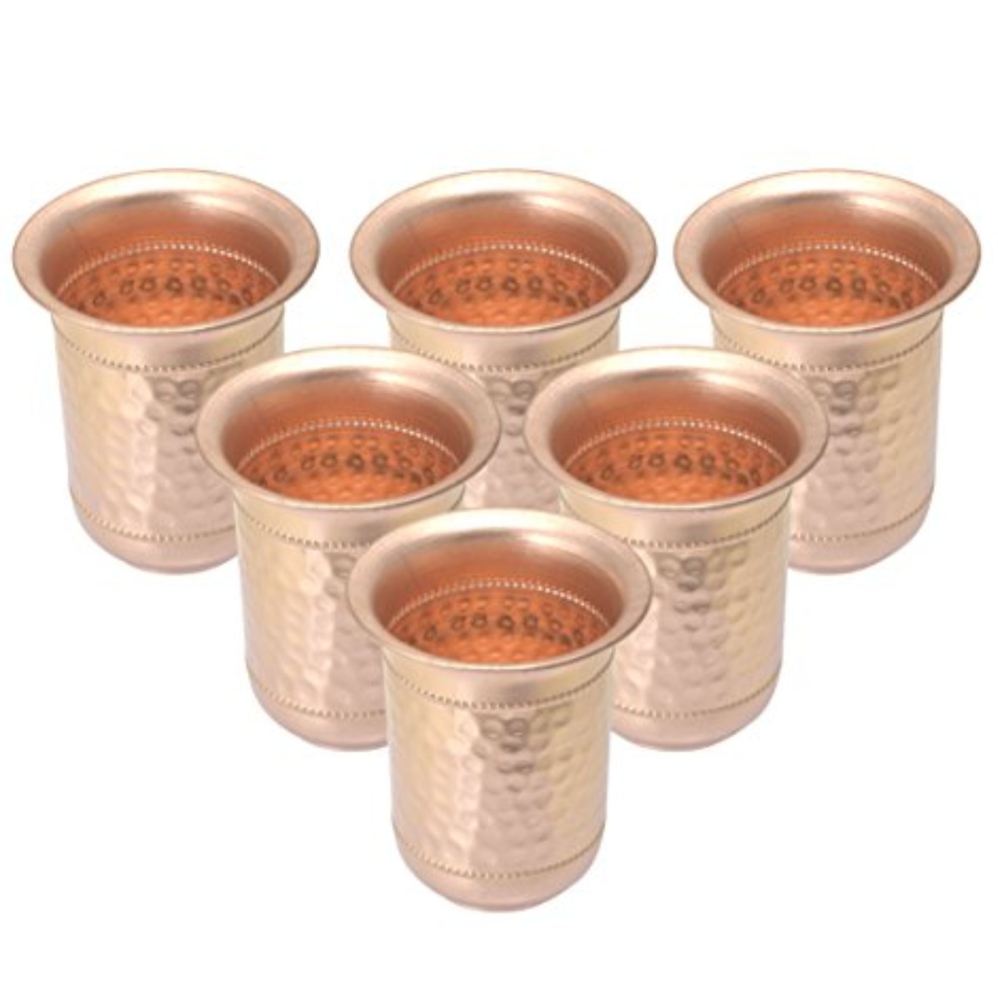 Set of 6 pure copper glasses with traditional handcrafted finish