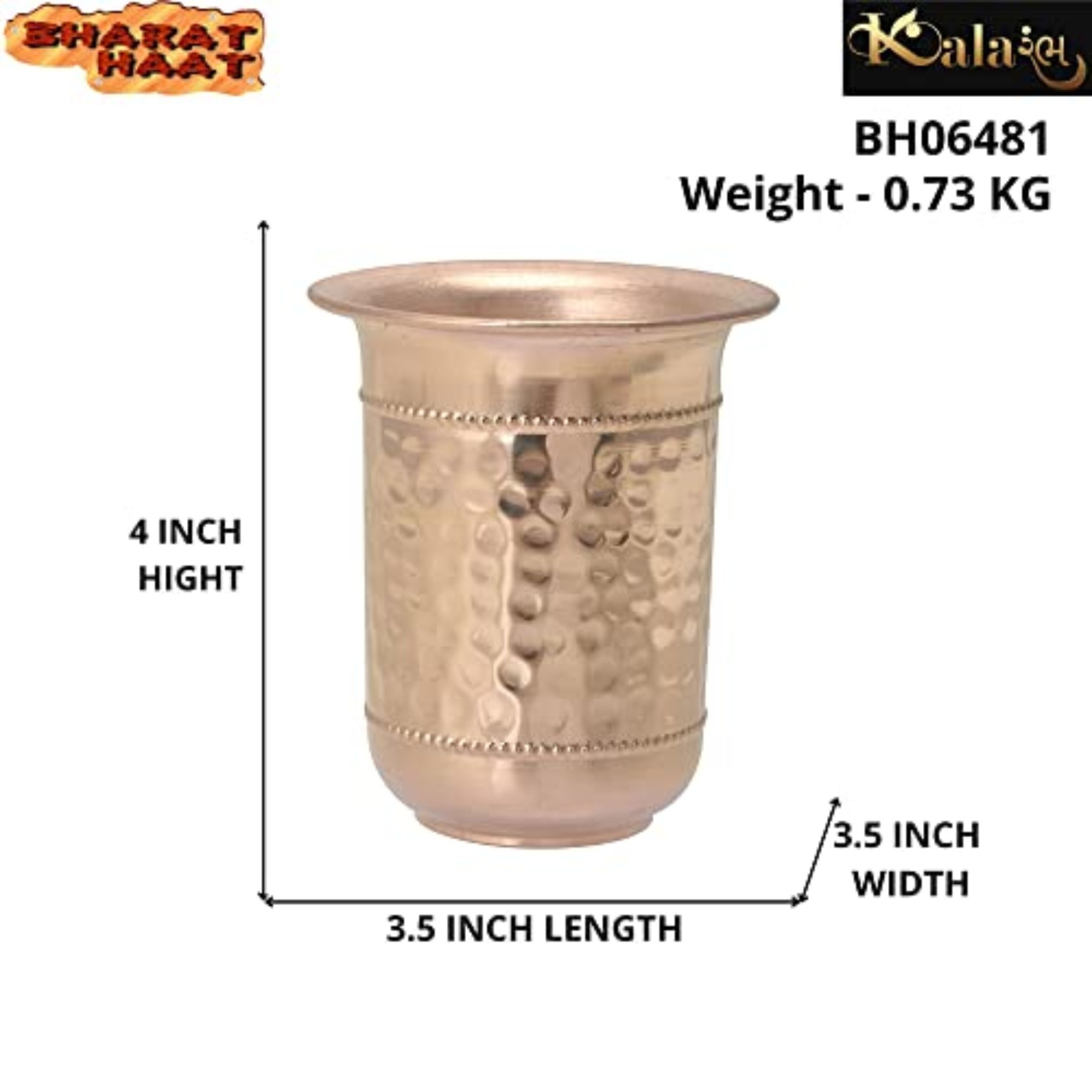 Each glass measures 3.5 x 3.5 x 4 Inch (8.89 x 8.89 x 10.16 cm), with a total set weight of 730 grams. The compact yet sturdy design makes these glasses perfect for everyday use at home, office, or during festive occasions. Their elegant shine and traditional appeal also make them a wonderful gift option for weddings, housewarmings, and festivals.