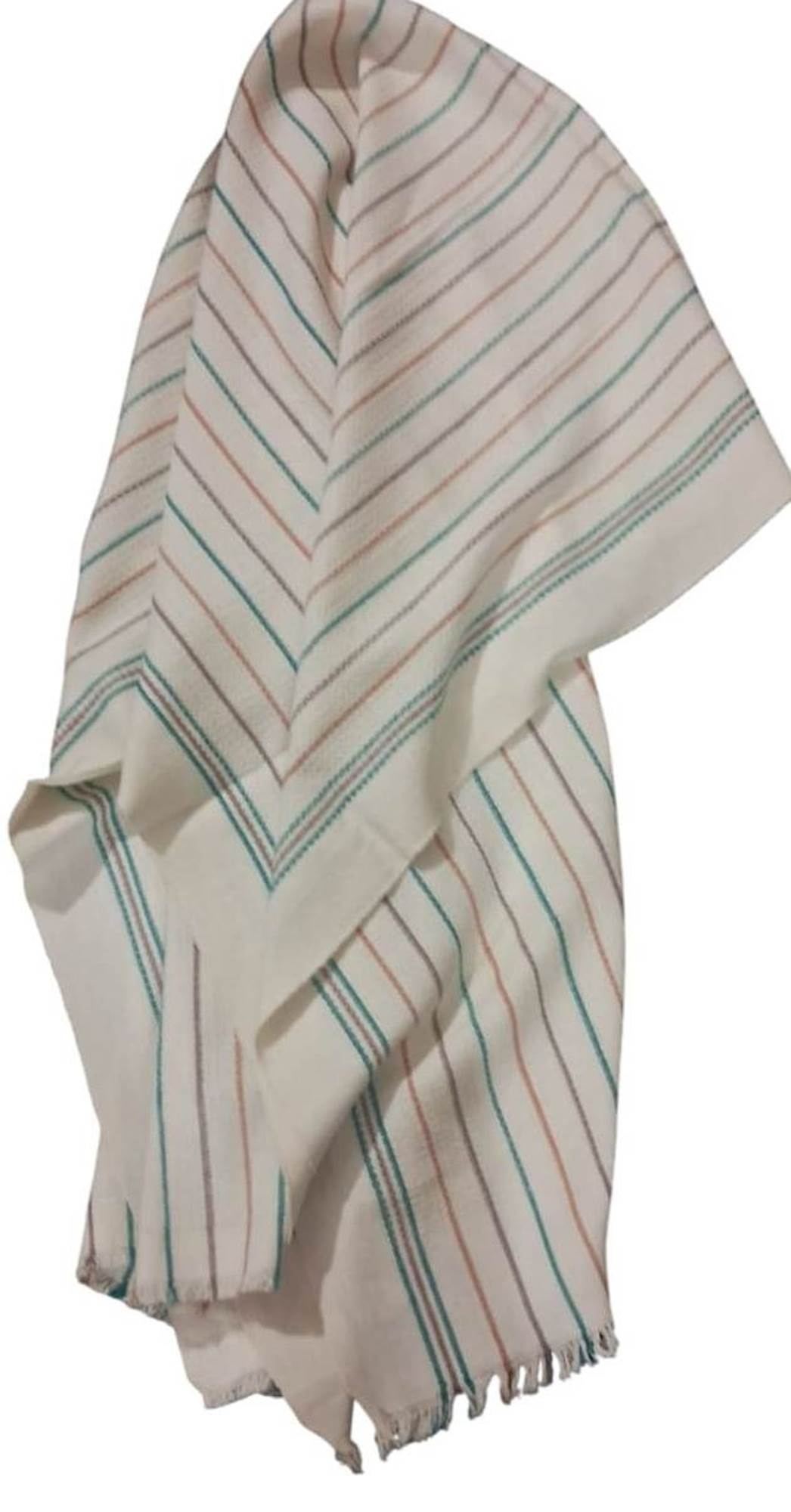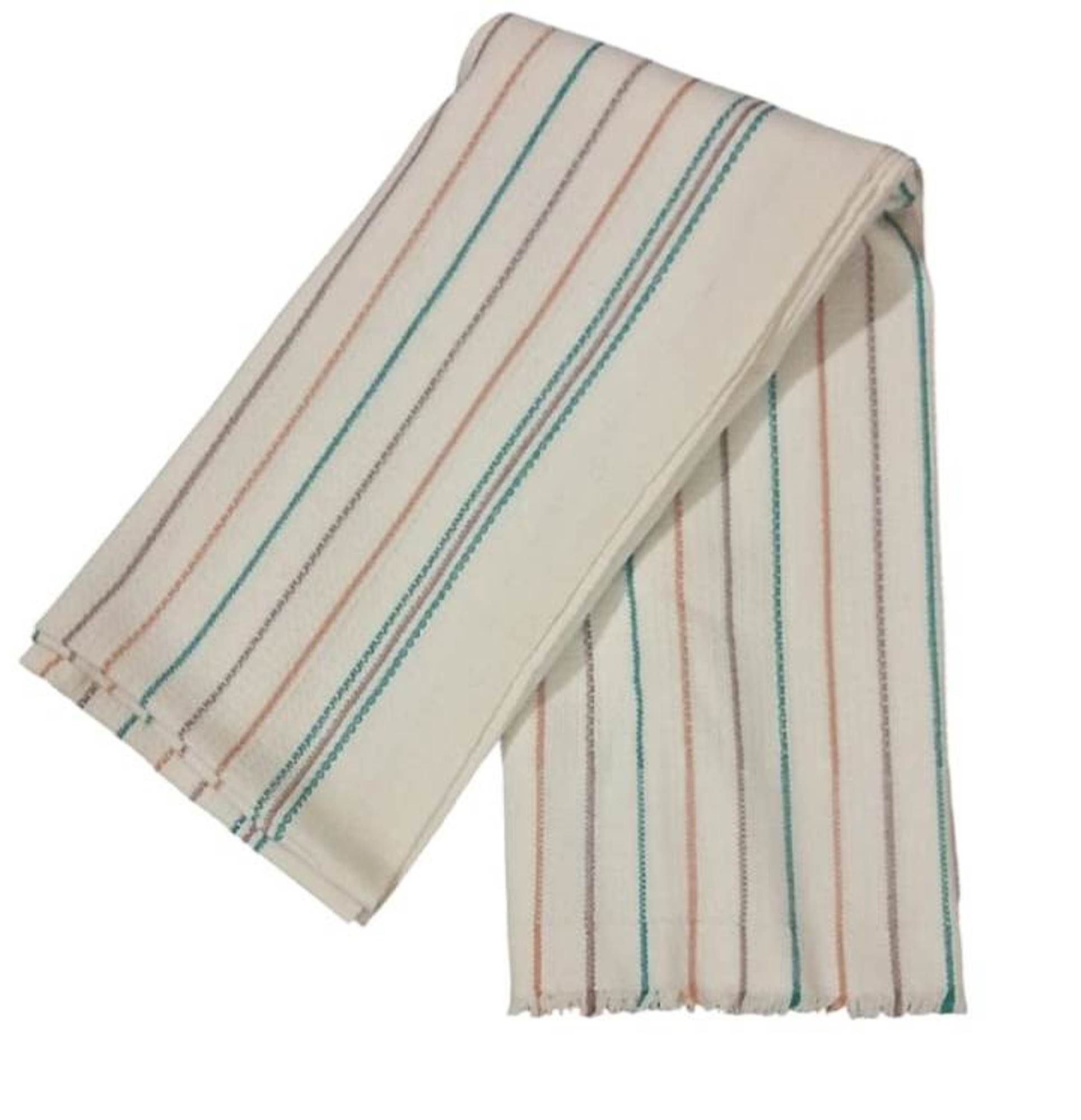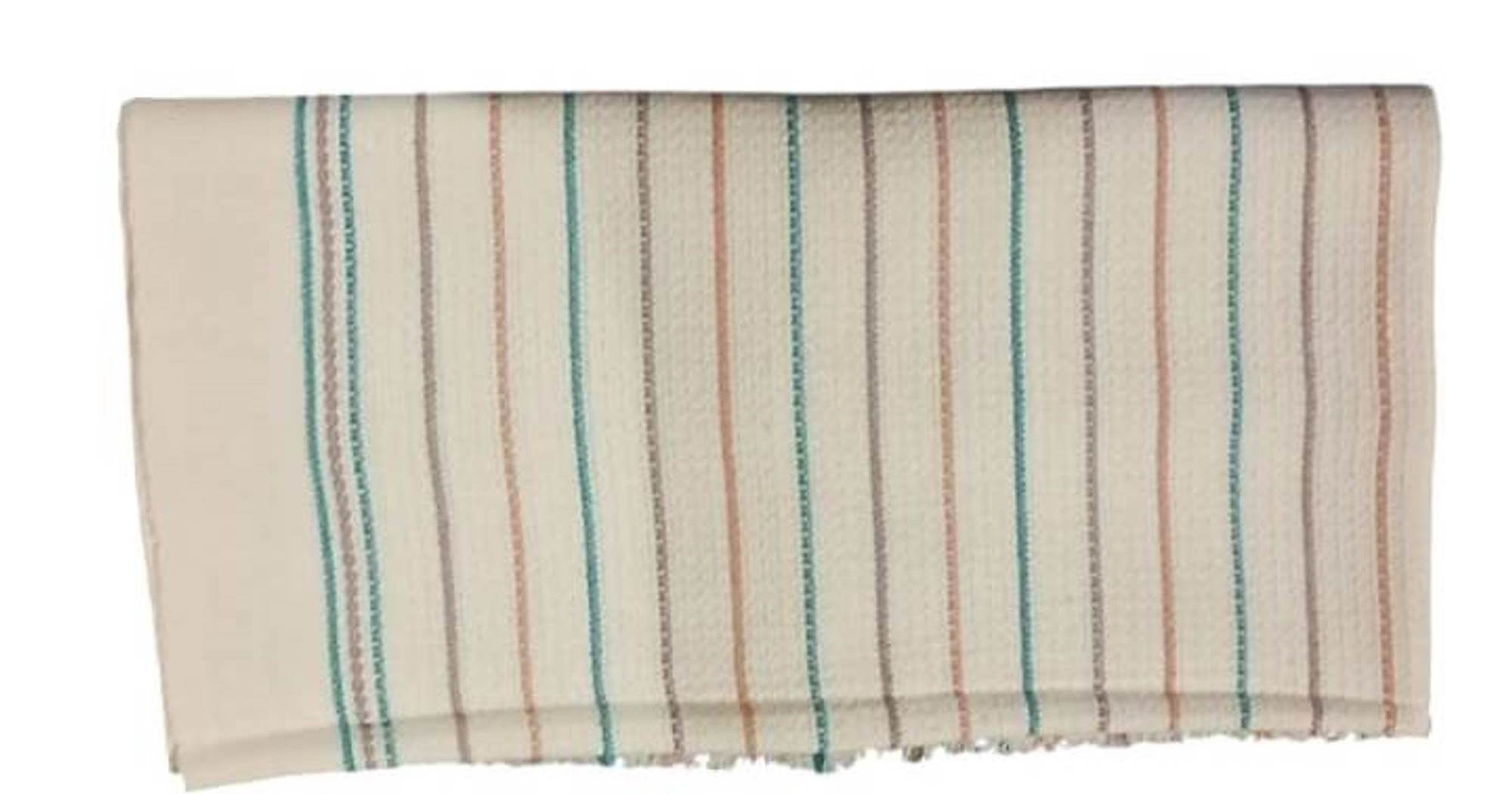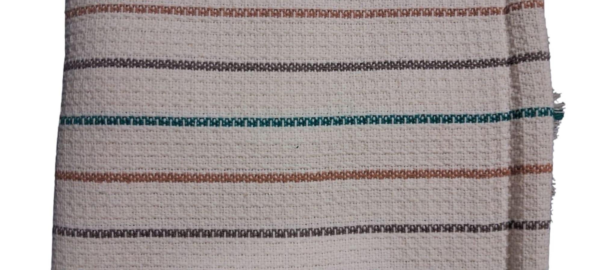 2 Green: Natural towel with Green Brown and Mustard stripe
