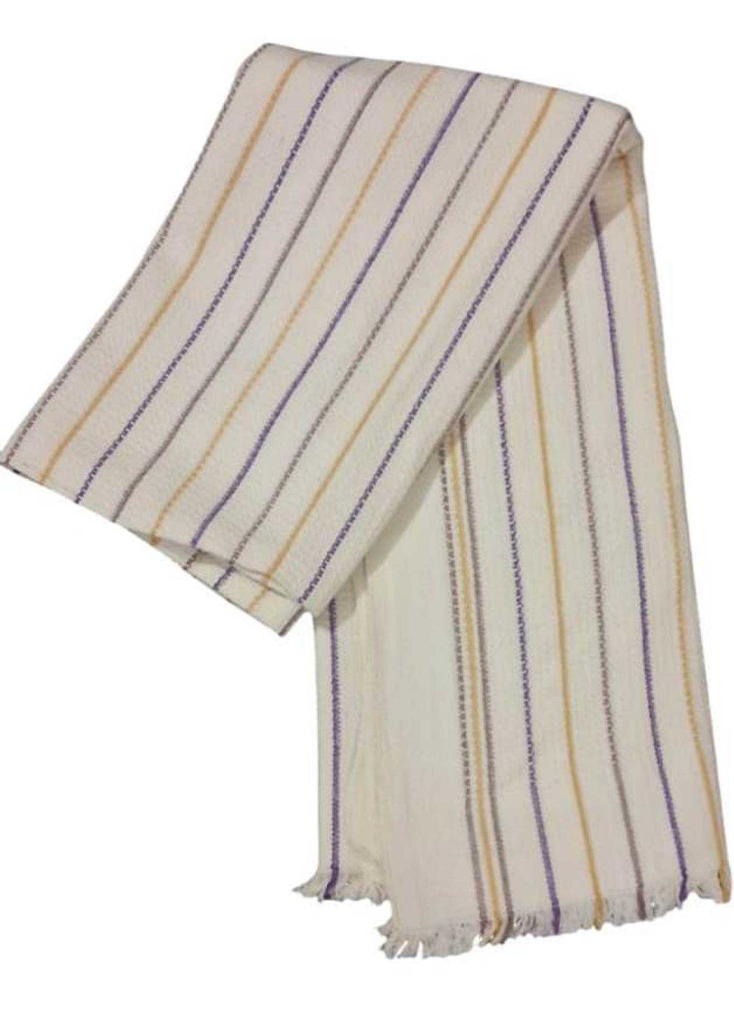 1Purple: Natural towel with Purple Brown stripes