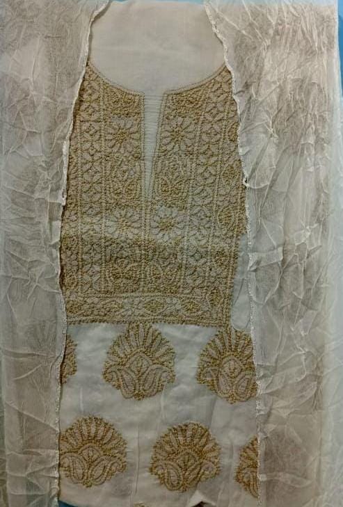 Fine hand embroidered cotton dress material for women suit with siffon dupatta