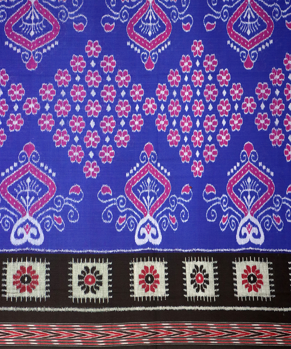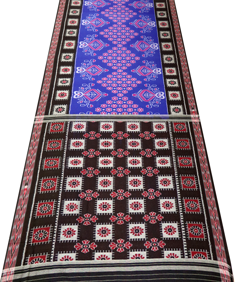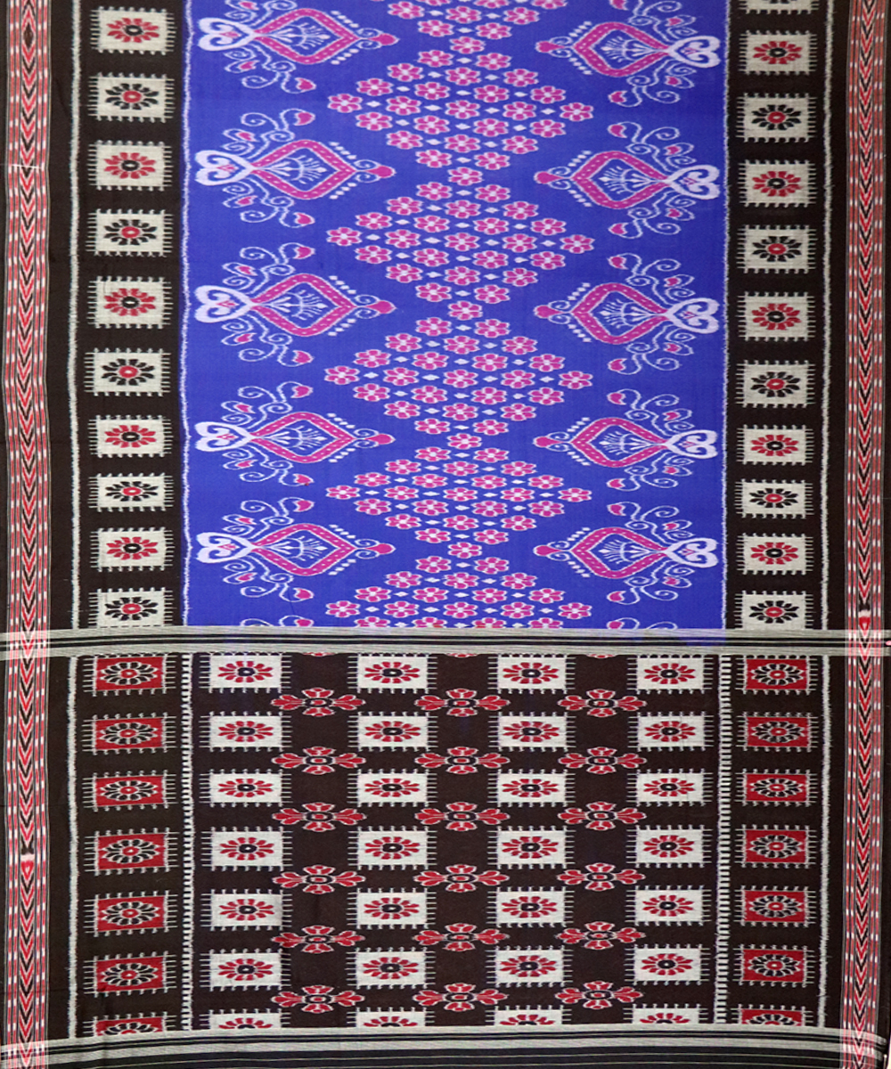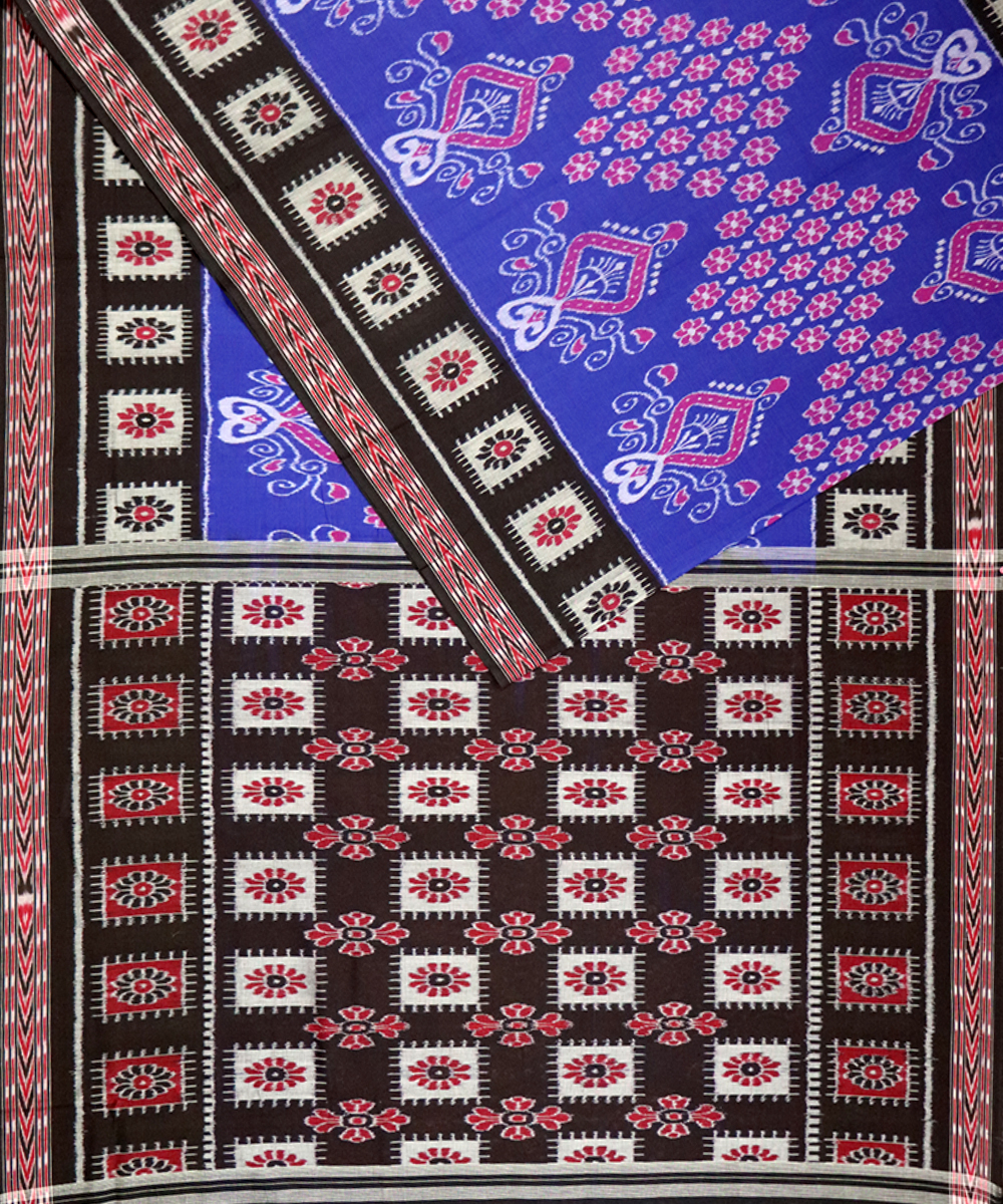 Exclusive Handwoven nuapatna cotton saree dark blue base with Traditional ikat in body & border black base with pasapali ikat & dobby & Pallu black base with traditional ikat ,Saree has Blouse piece.