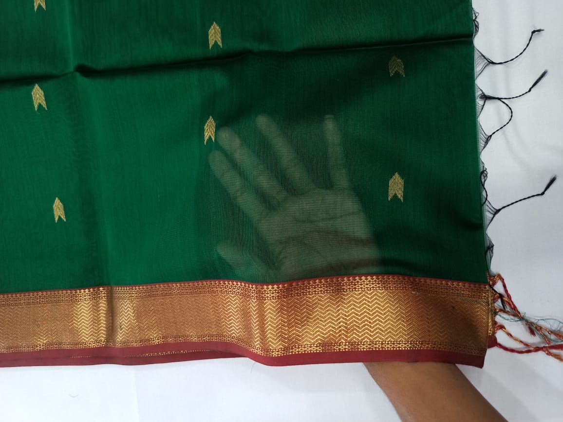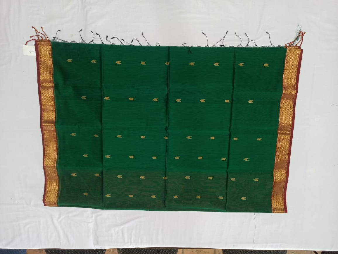 Dark Green Maheshwari Silk Saree with Golden Zari