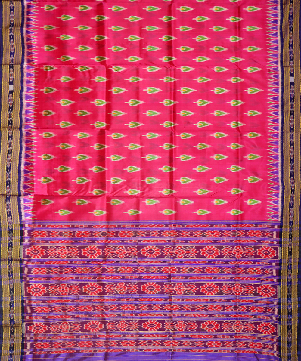 Handwoven traditional Khandua silk saree Dark Pink base Ikat in body & border dark blue base with traditional ikat & Pallu dark blue base with traditional ikat