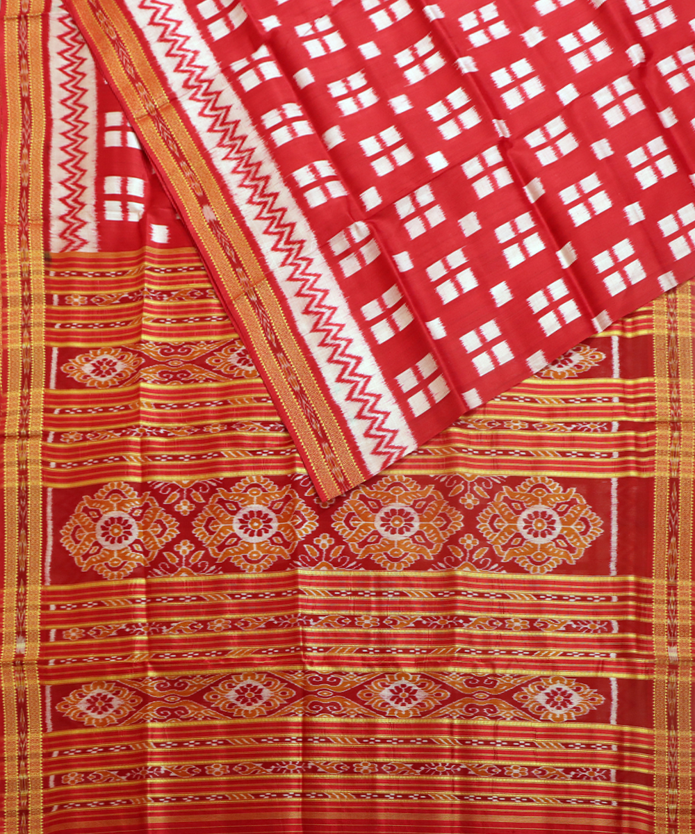 Handwoven traditional Khandua silk saree Dark Red base Ikat in body & border dark red base with Traditional ikat & Pallu dark red base with traditional ikat