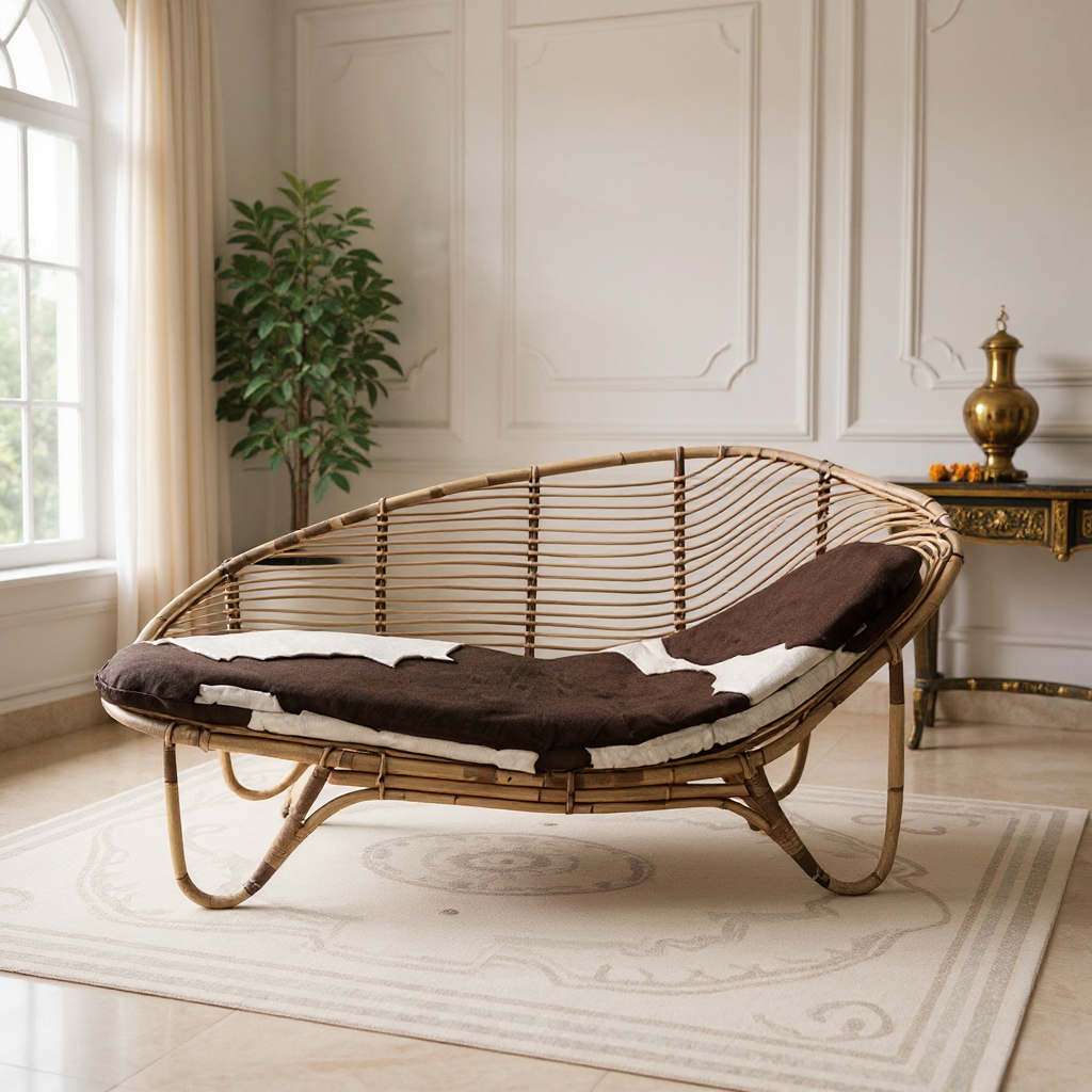 Cane 2-Seater Sofa with Cushion | Standard Size | Brown