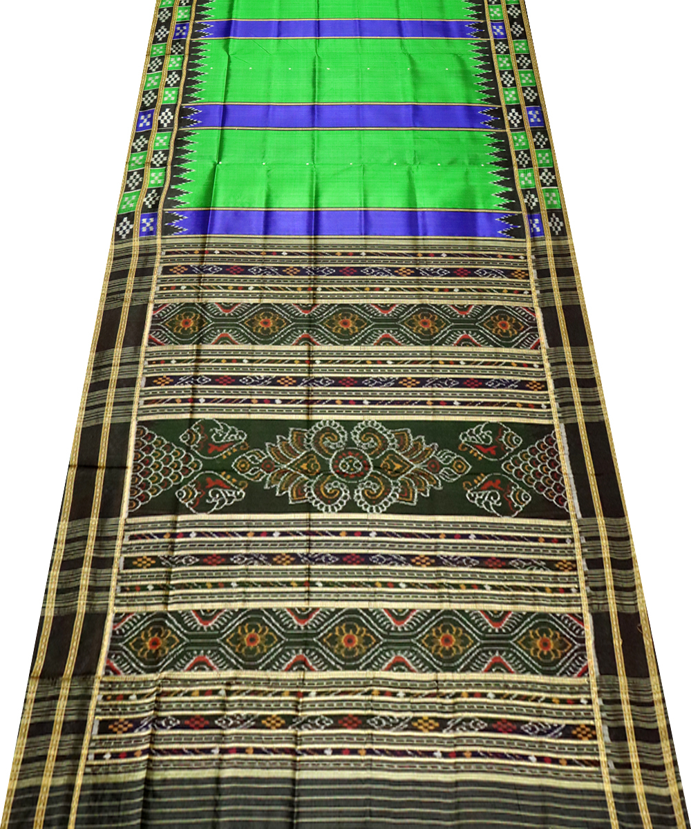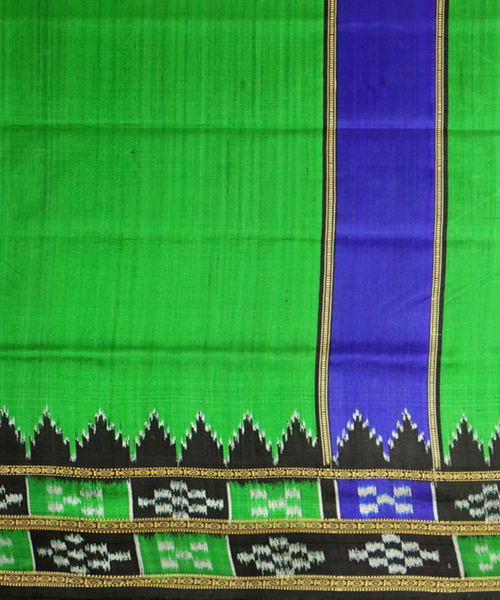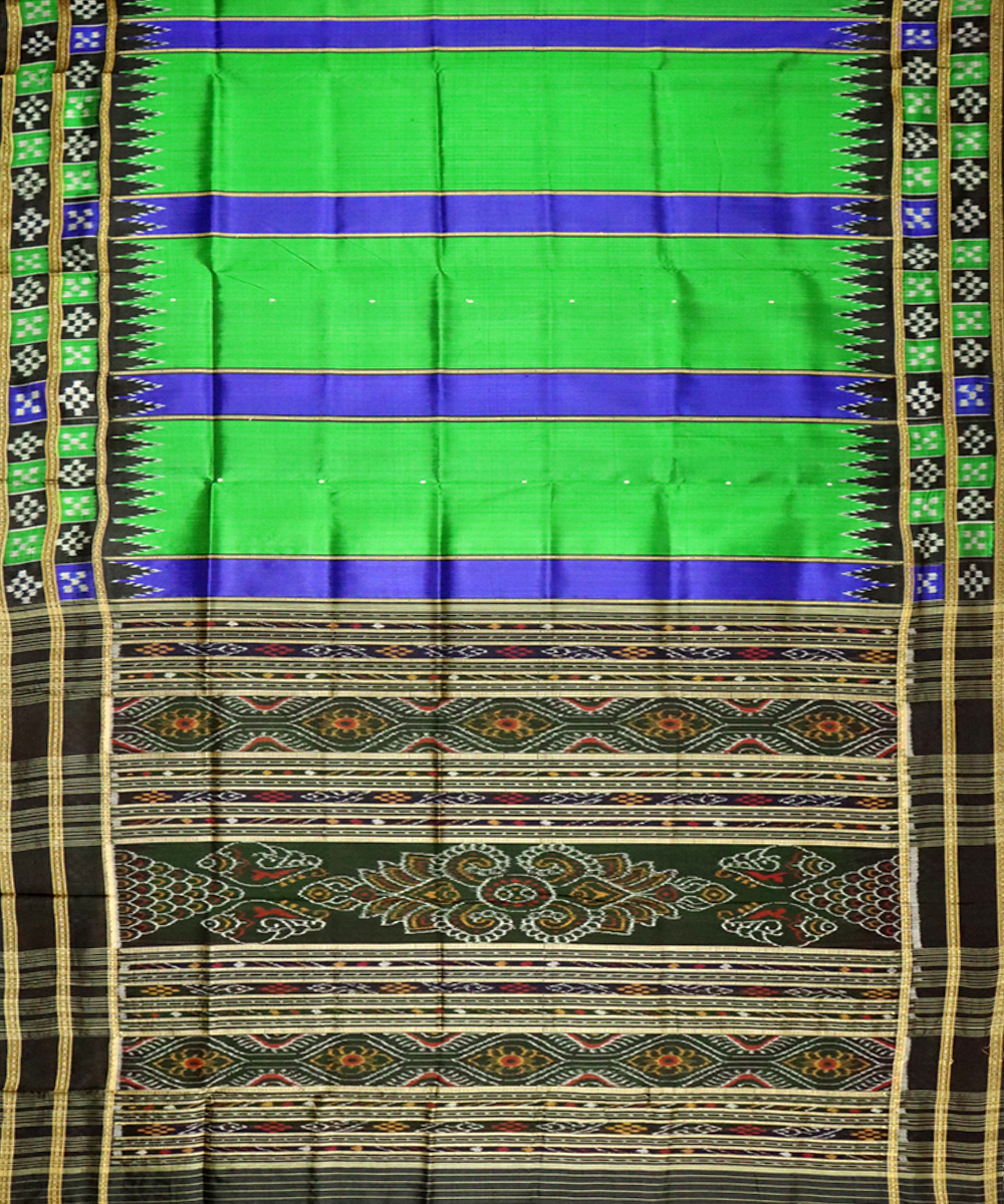 Handwoven traditional Khandua silk saree Deep Green & Duke Blue base Plain with butta in body & border multi colour base with Temple & pasapali ikat & Pallu Black base with traditional ikat