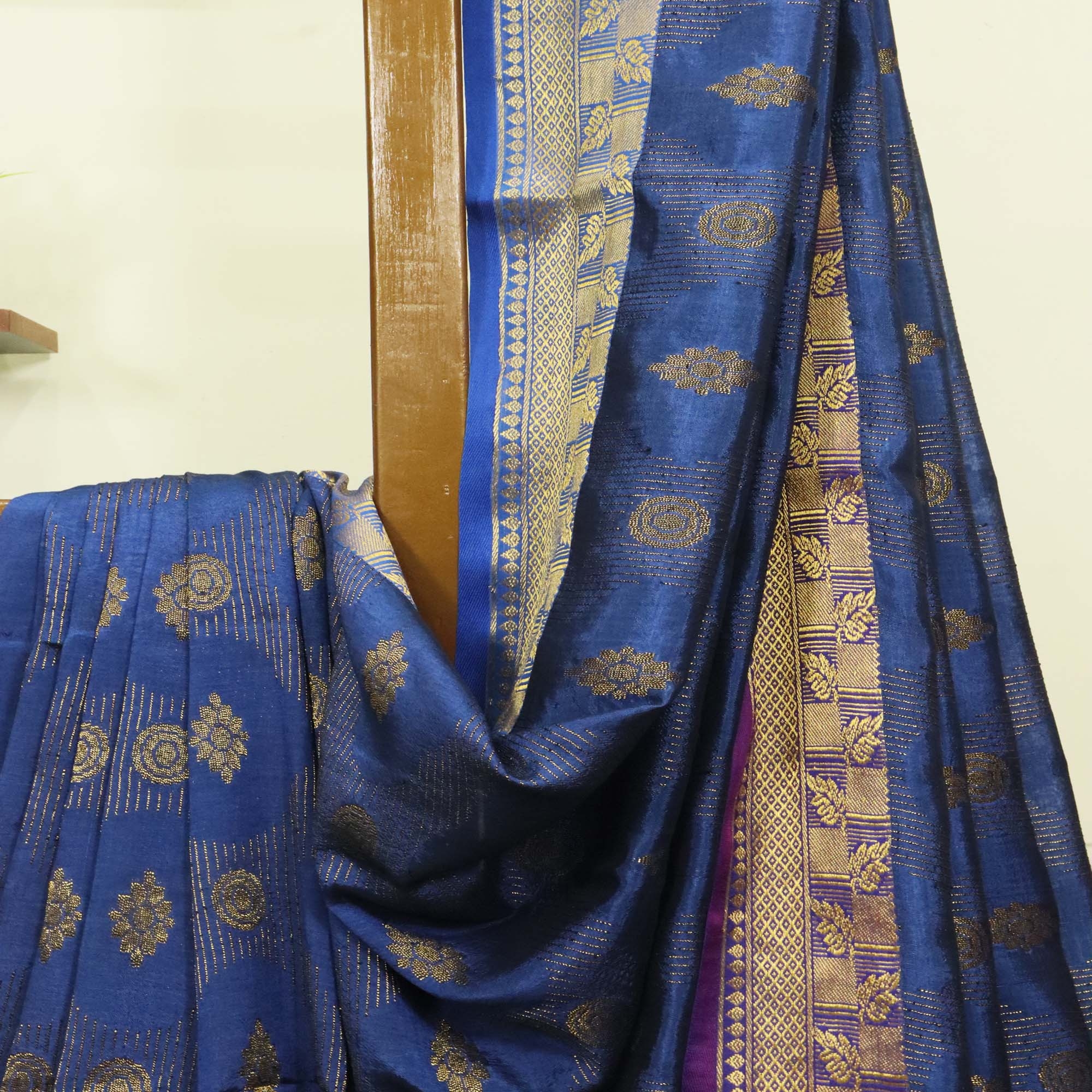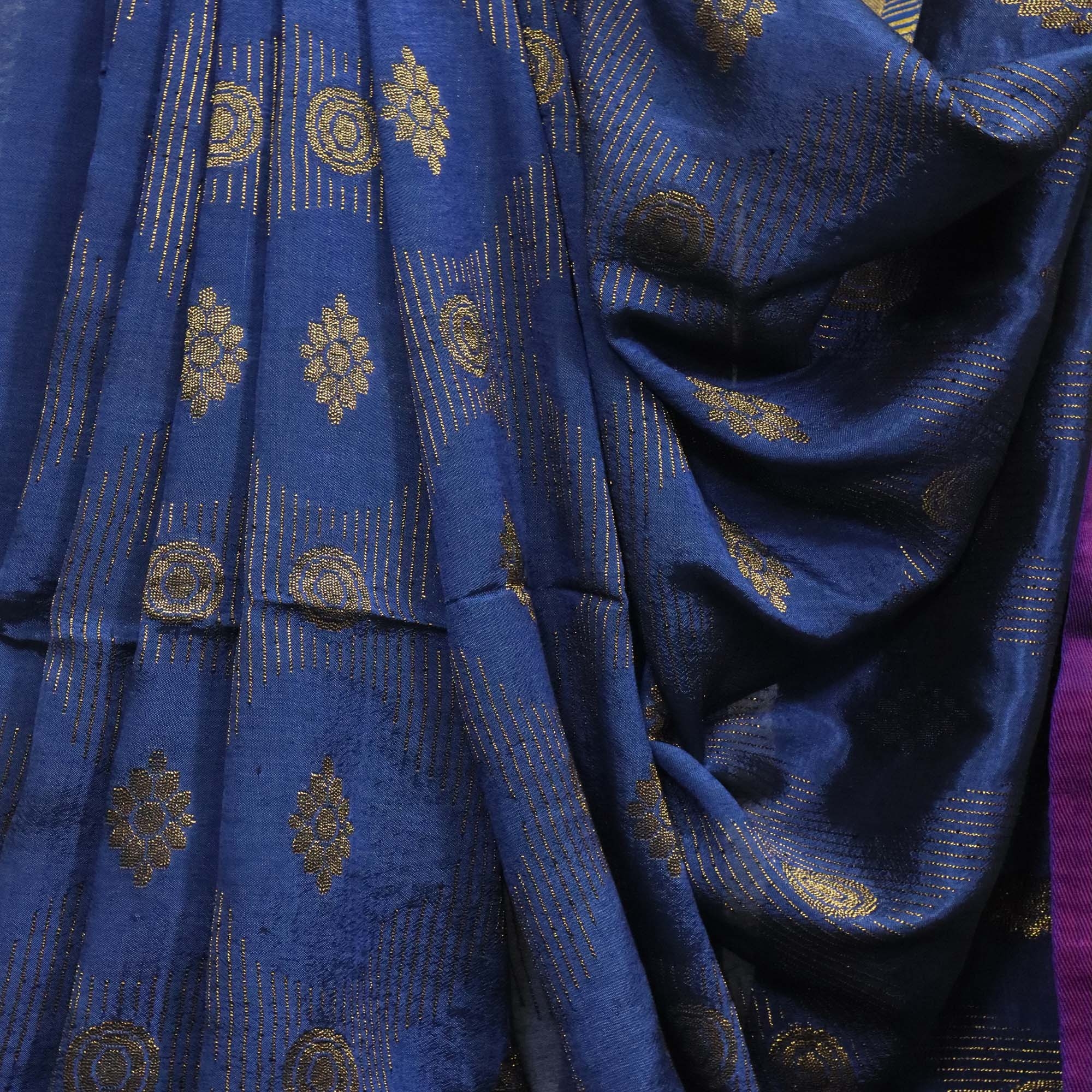 Deep Sky Blue Bengal Handloom Katan Silk Zari Emboss Saree