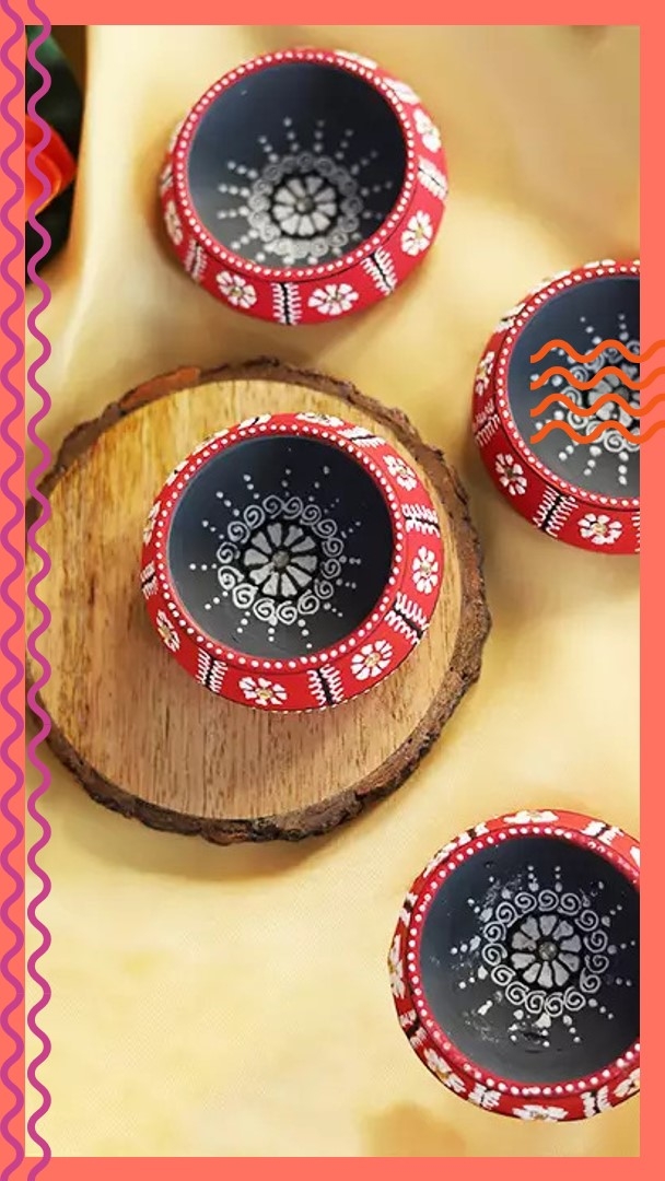 Each diya is individually shaped and molded by hand, ensuring that every piece is unique. The attention to detail and the skill involved in crafting these diyas highlight the artisan's expertise and dedication. The intricate designs and vibrant colors are believed to attract positive energy and auspiciousness, making it a popular choice for festivals, religious ceremonies, and celebrations. diya is not just a functional oil lamp but a symbol of artistic excellence, cultural heritage, and spiritual significance. It embodies the triumph of light over darkness, the preservation of traditional craftsmanship, and the enhancement of spiritual and aesthetic experiences.