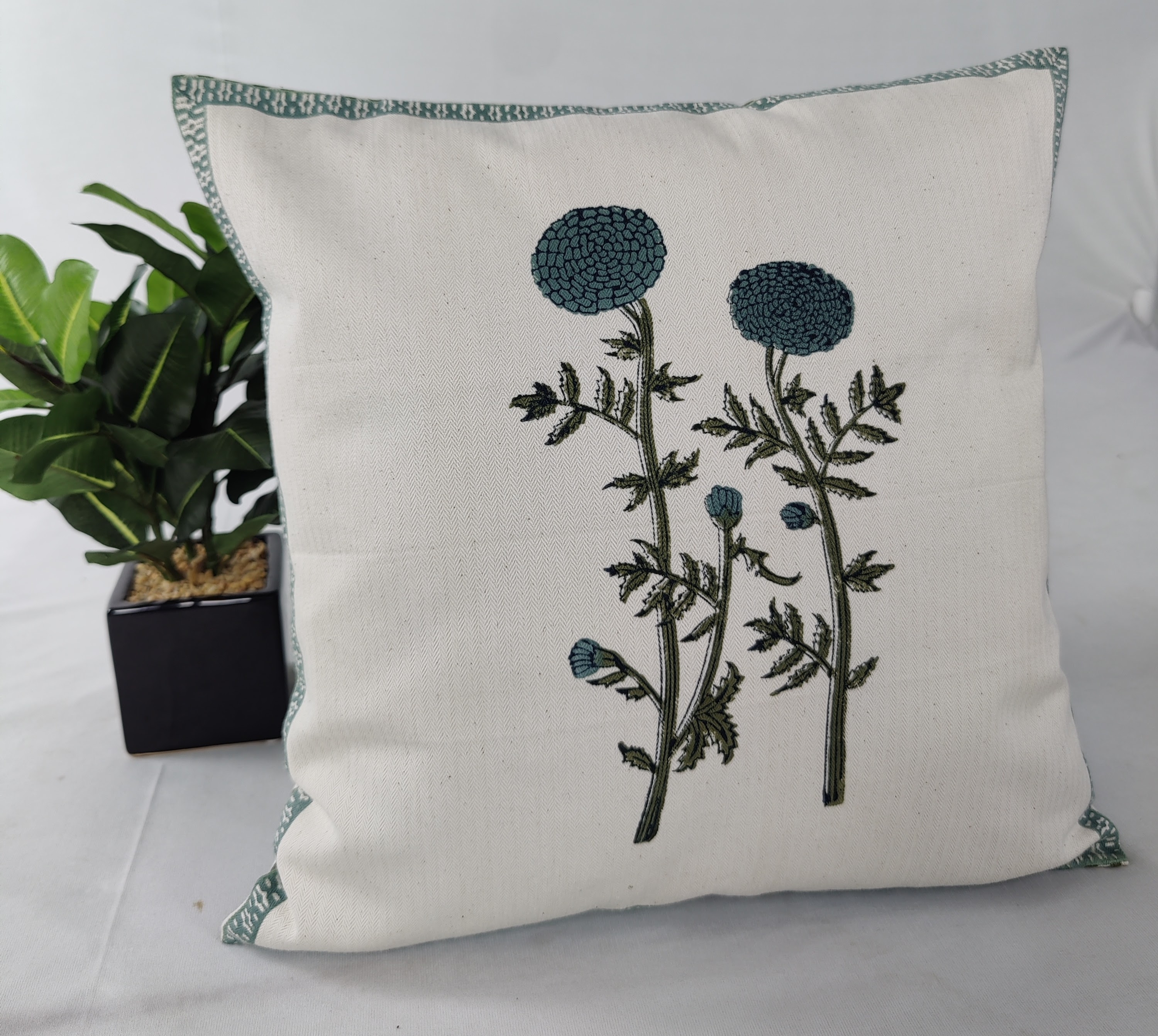 Block Printed Cotton Cushion Covers | Set of 2 | Floral Print