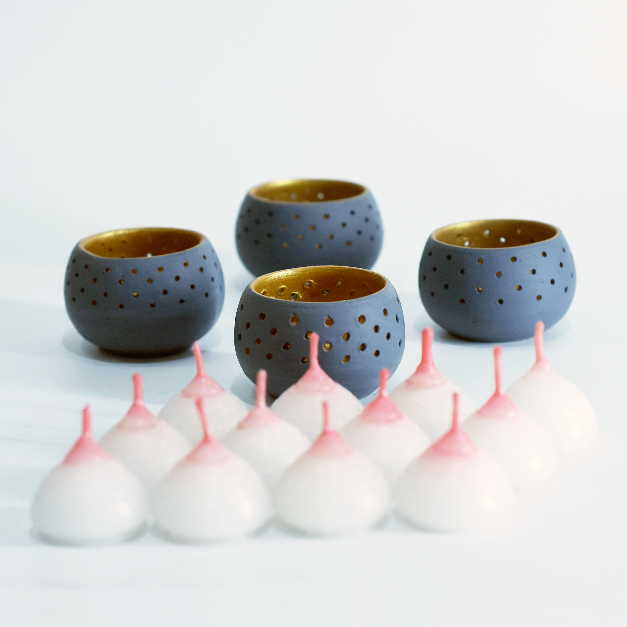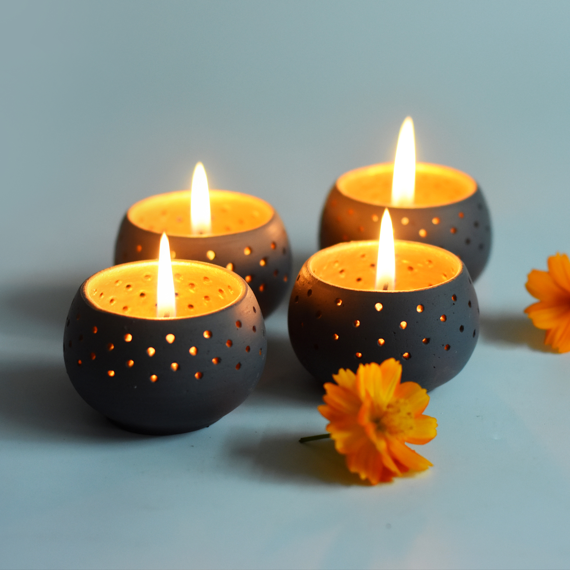 DOME Tealight Holders_Grey Set of 4 With Complimentary HD Candles