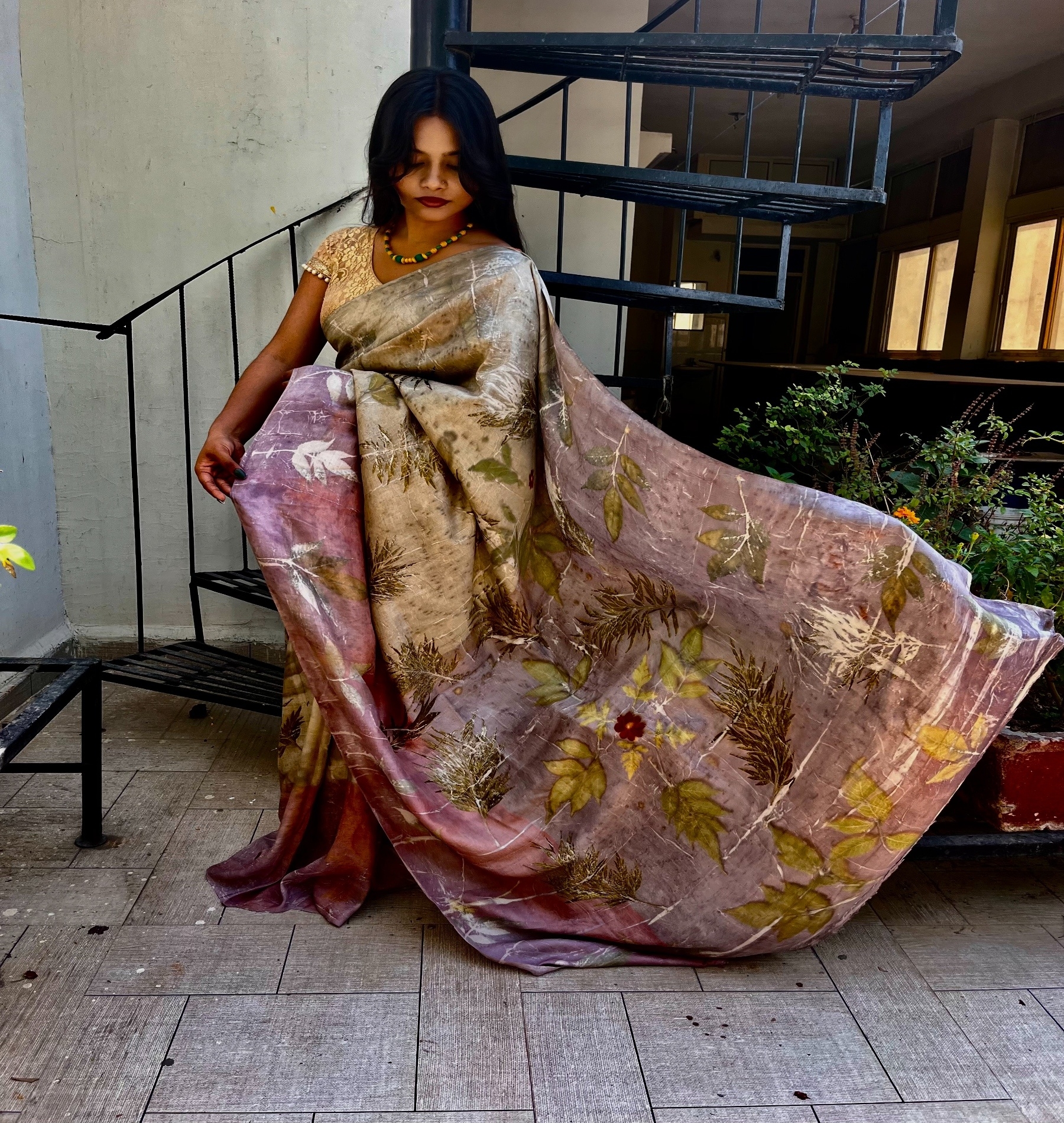 Ecoprint Natural Dyed Mulberry Silk Saree
