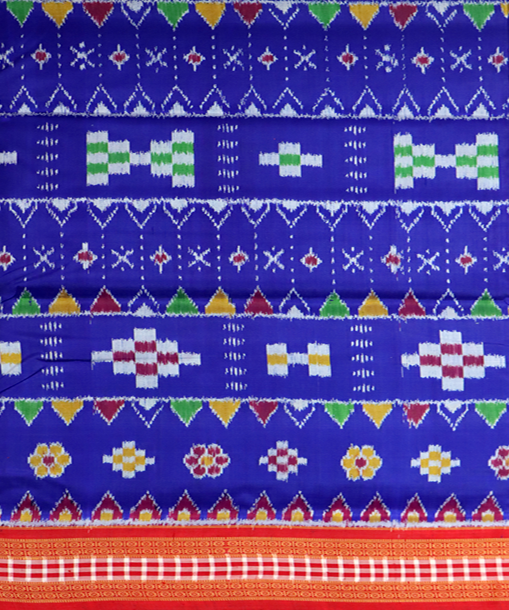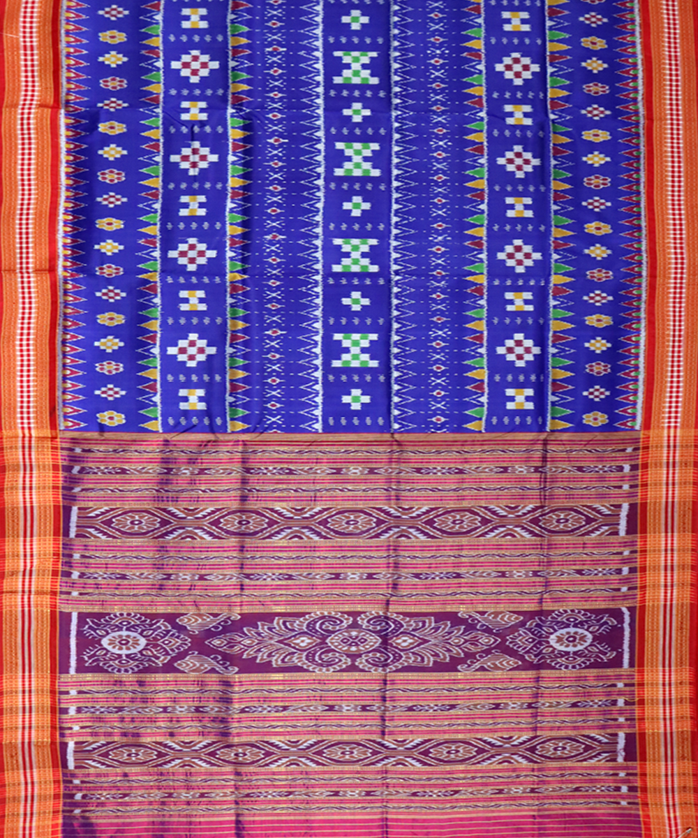 Handwoven traditional Khandua silk saree Electric Blue base Ikat in body & border dark red base with traditional ikat & Pallu dark red base with traditional ikat