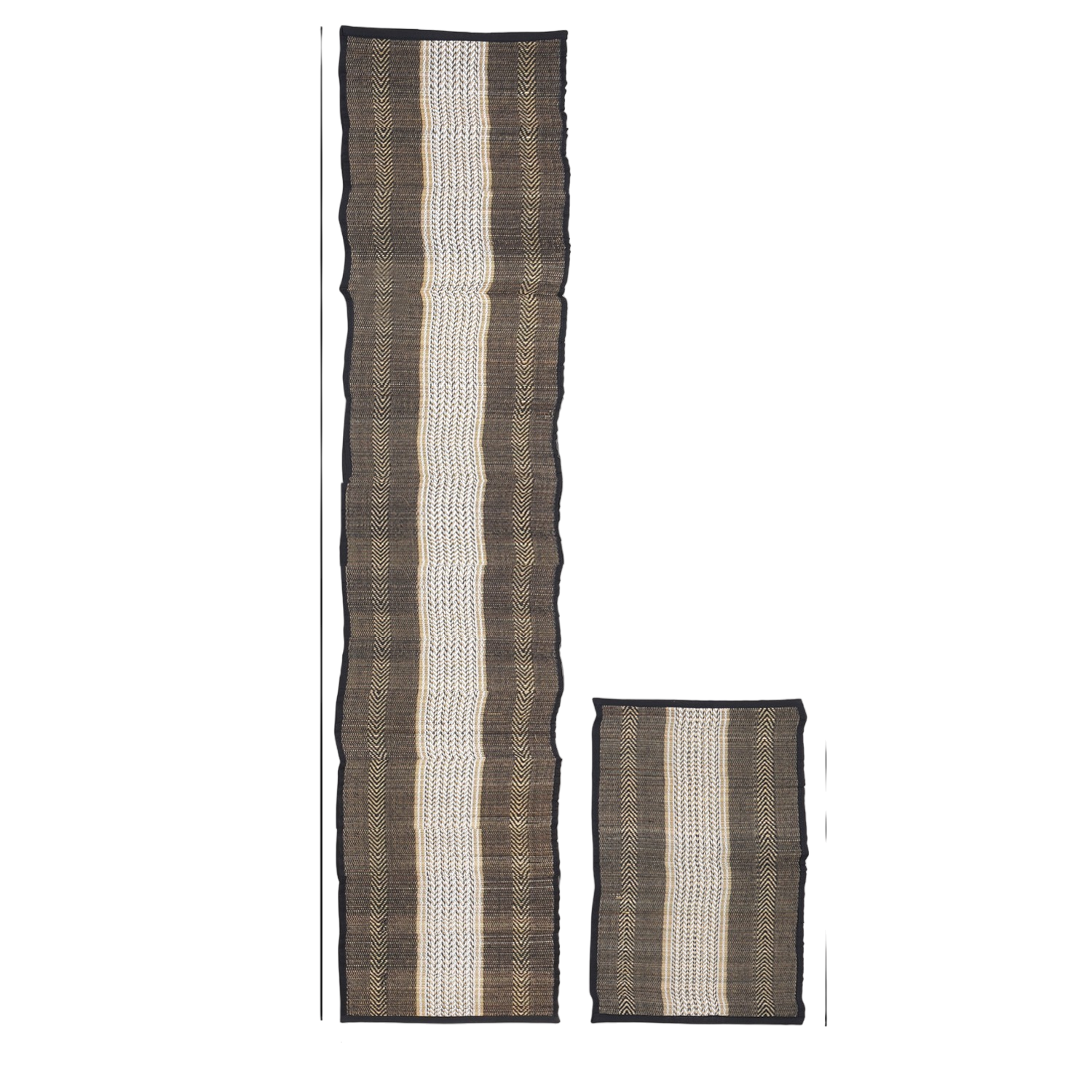 Transform your dining experience with our exquisite table mat set, handcrafted in West Bengal. This set includes six stunning black and white handloom table mats, each measuring 12 by 17 inches, and a beautifully woven table runner sized at 12 by 15 inches. Made from premium Madhurkathi and cotton, these durable and stylish mats not only protect your table but also add a touch of elegance to your home decor. Perfect for family gatherings or special occasions, our table mat set is designed to impress. Elevate your dining space with this unique blend of tradition and modern aesthetics.