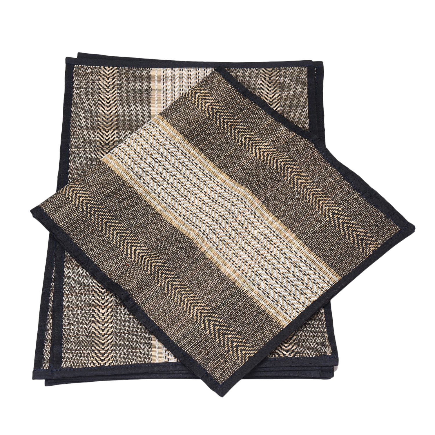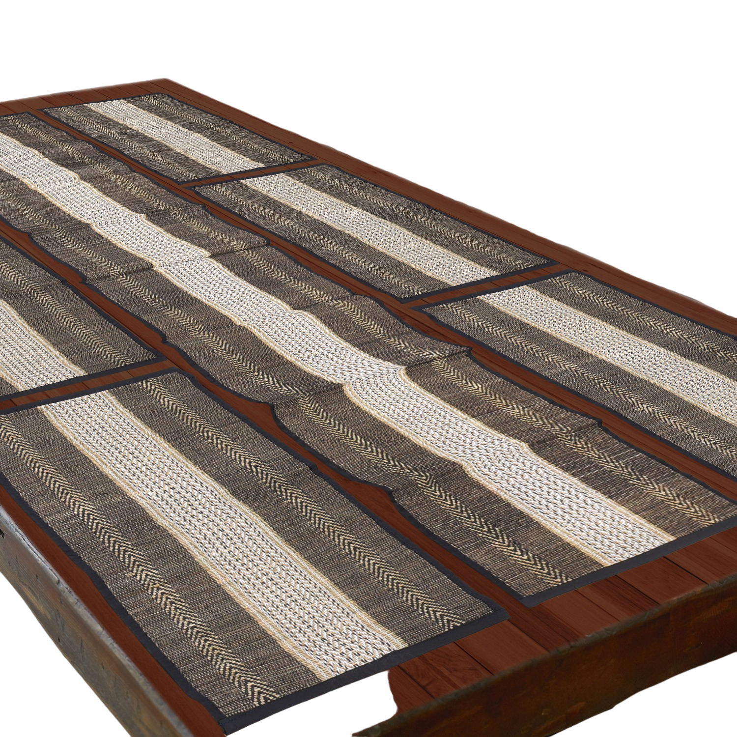 - Handcrafted in West Bengal, our table mat set features six elegant black and white handloom table mats, perfect for enhancing your dining experience.