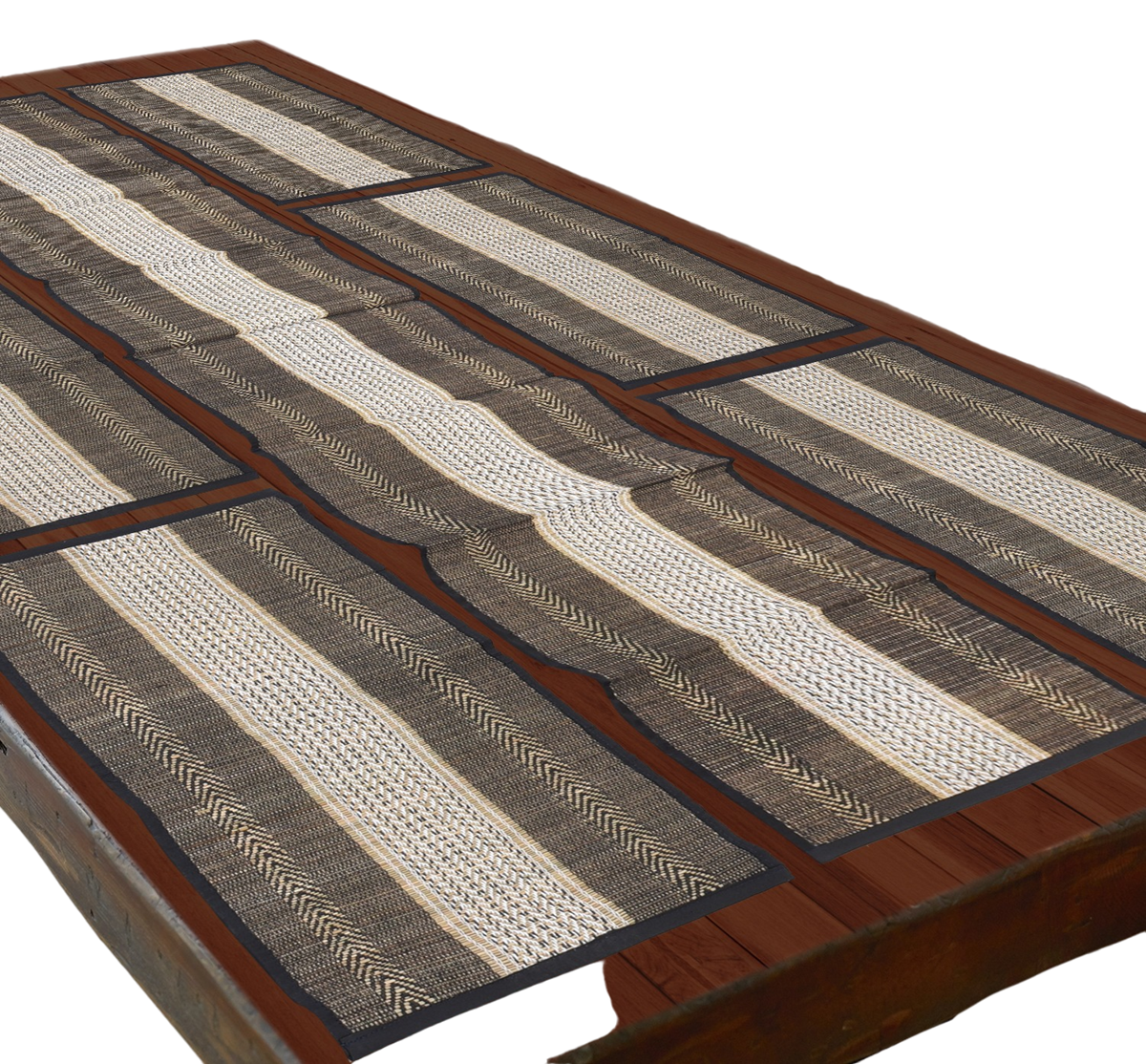- Crafted from high-quality Madhurkathi and cotton, this handloom table mat set combines durability with elegance, perfect for any dining occasion.