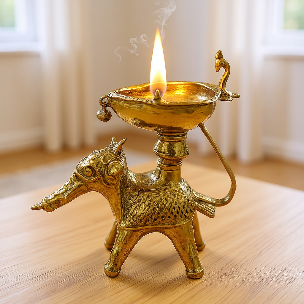 Elephant Diya - Puja Accessories - GI Certified Bengal Dokra