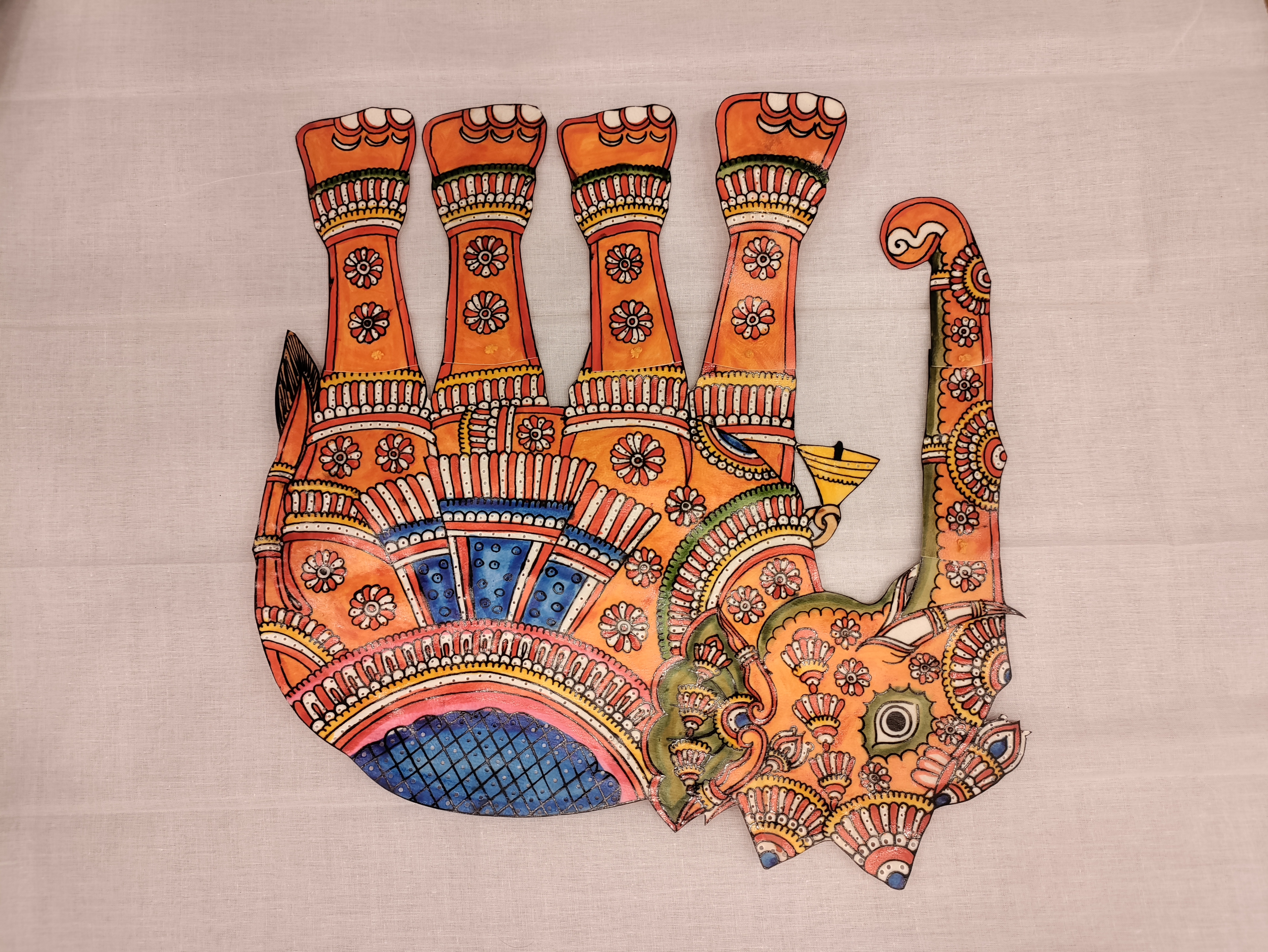 This elephant puppets is made by naturally tanned goat leather and camel water proof inks........